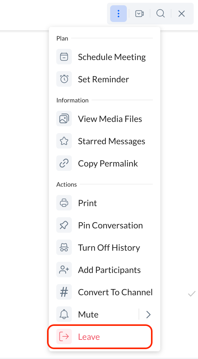 グループチャット画面右上の ケバブメニュー(縦三点リーダー) をクリックし、移動 を選択します。