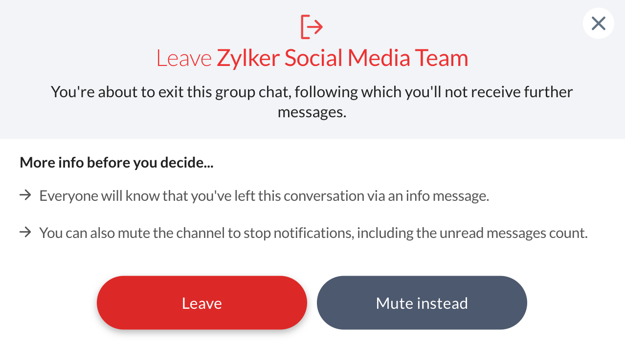 メモ:ポップアップウィンドウで 「代わりにミュート」 を選択して、通知の受信を停止することもできます。