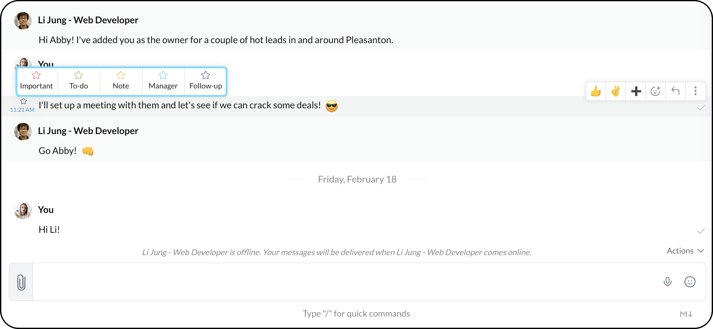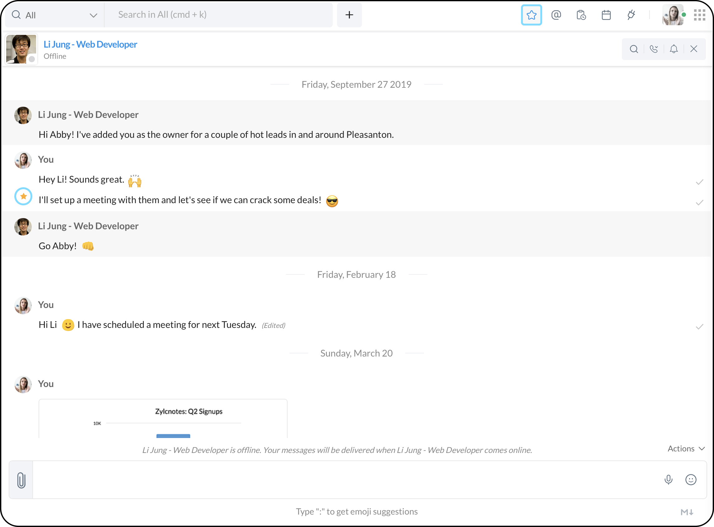 重要なメッセージをスター付きで保存して、いつでもスター付きのセクションからアクセスできます。