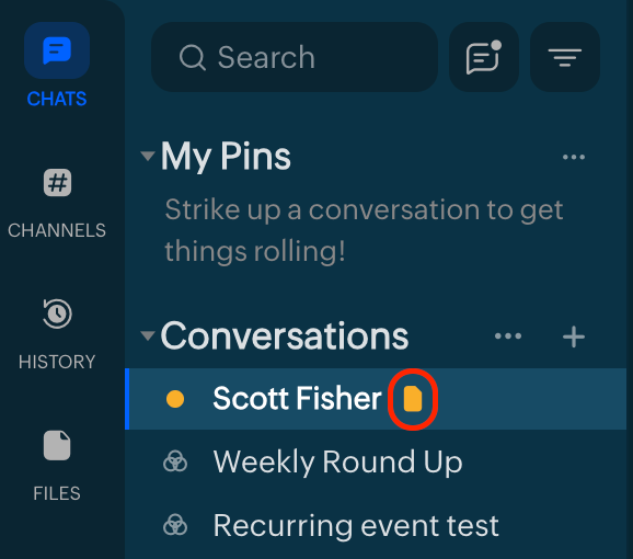 チャット名の横に黄色のメモアイコンが表示されます。