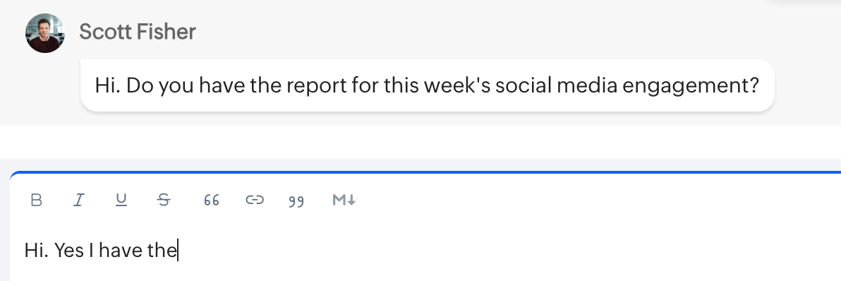 メモ: 下書きはチャットバーとモバイルアプリと同期されるため、テキストエリアで中断したところから続けて入力できます。