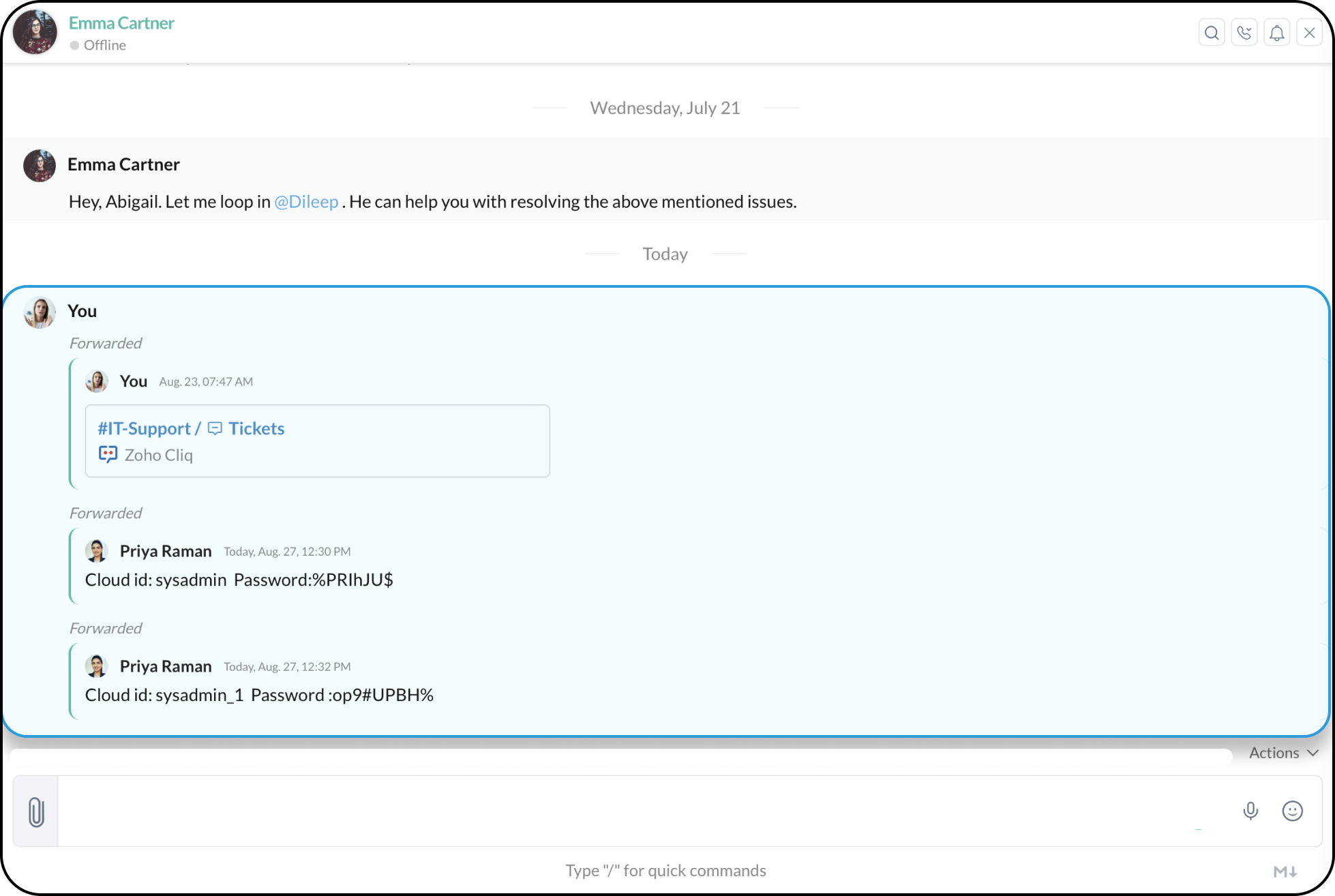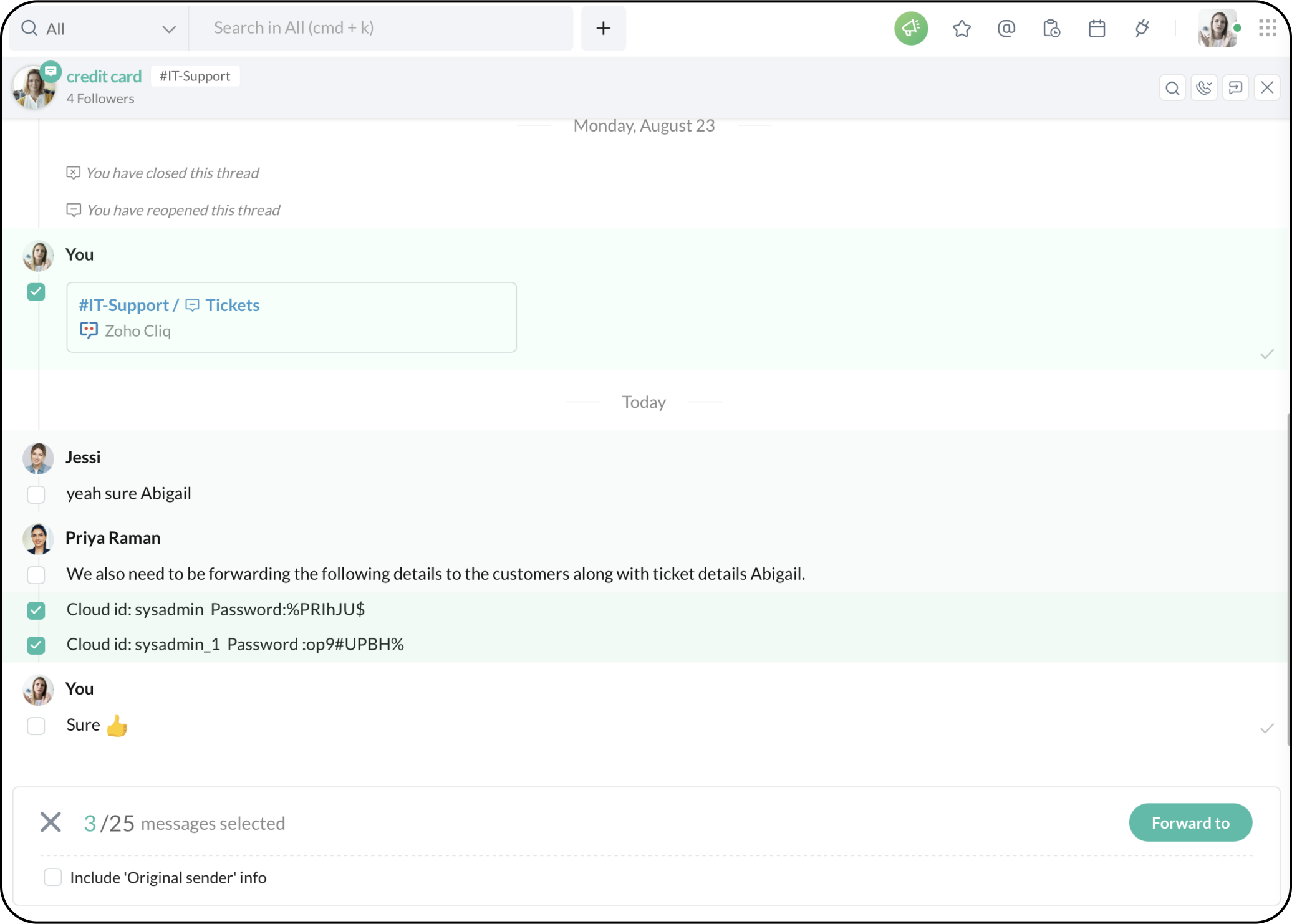 1. スレッド内のメッセージをナビゲートし、転送したい