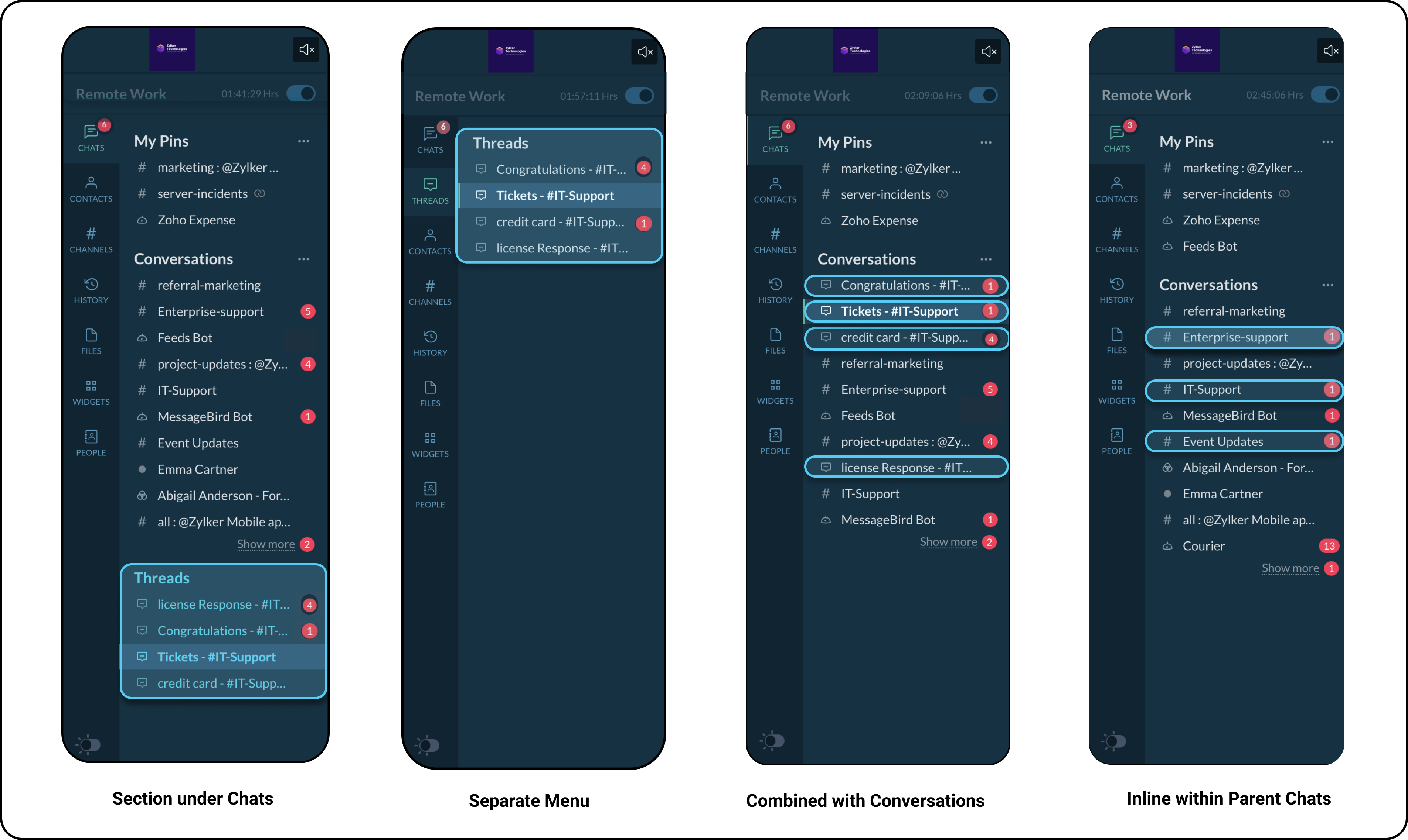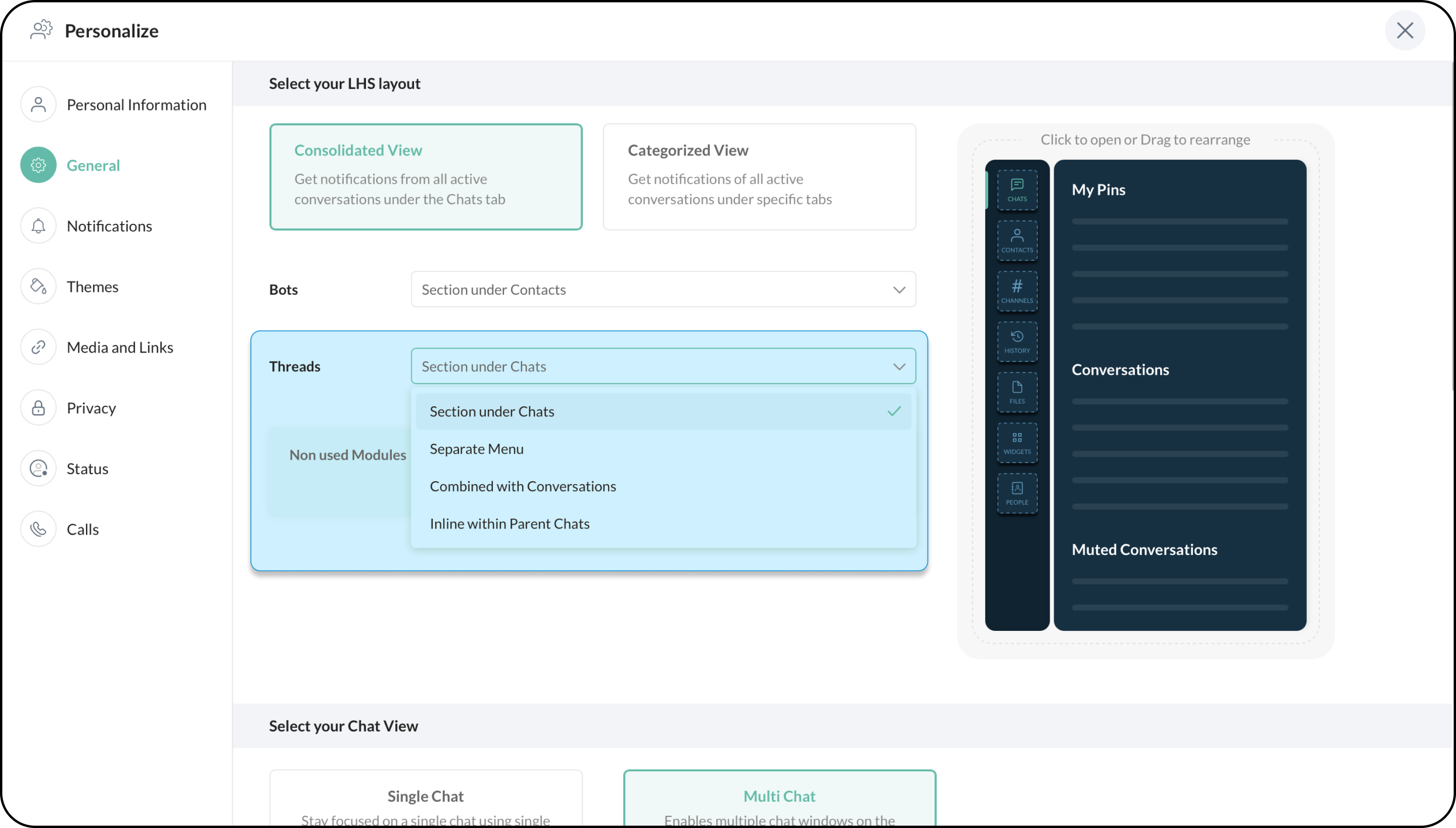 Cliq には、統合ビューとカテゴリ別ビューの2つのナビゲーションサイドバーレイアウトが利用可能です。