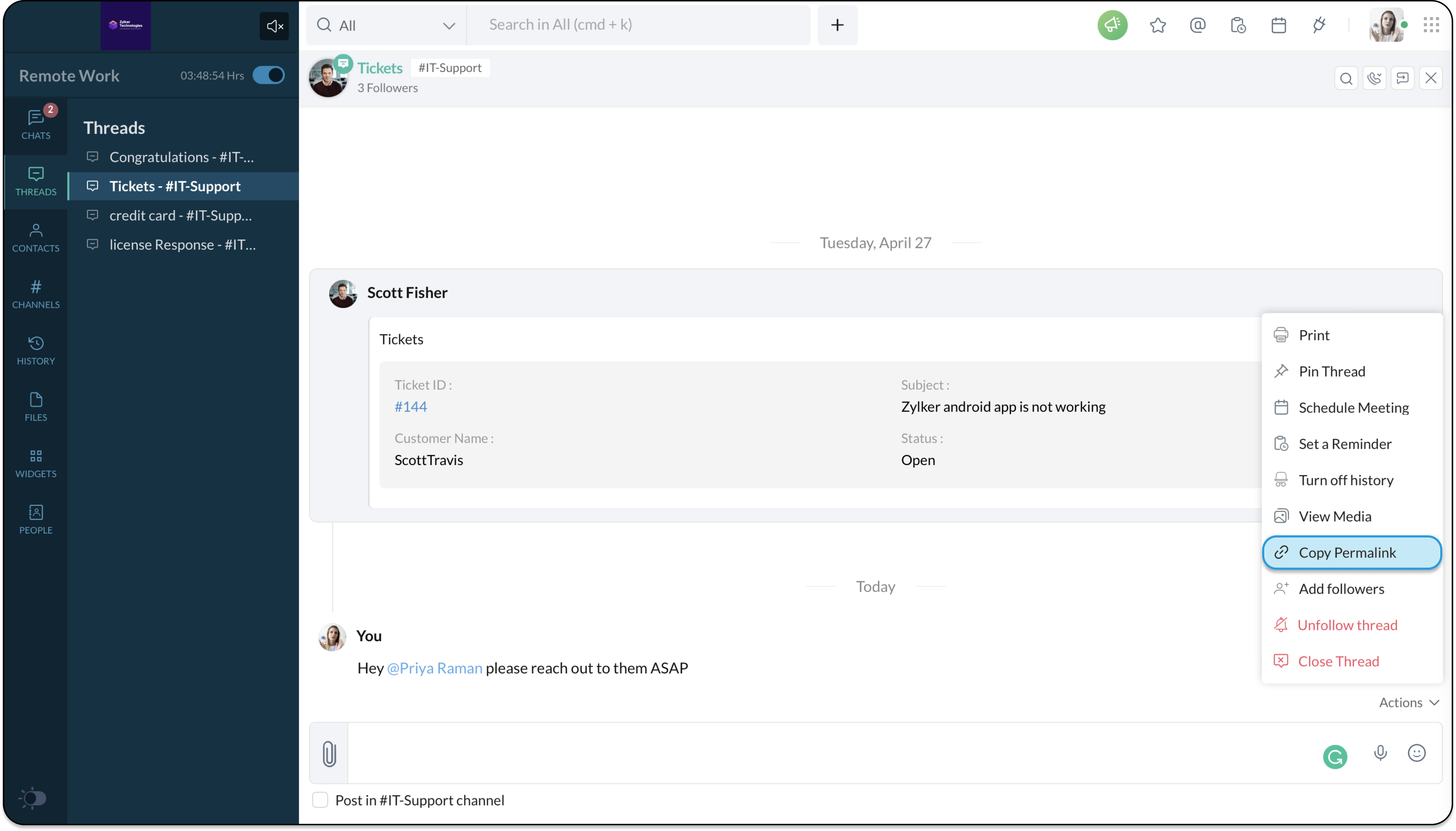 注意:スレッドのパーマリンクは、ユーザーが参加しているチャンネル内でのみ共有できます。