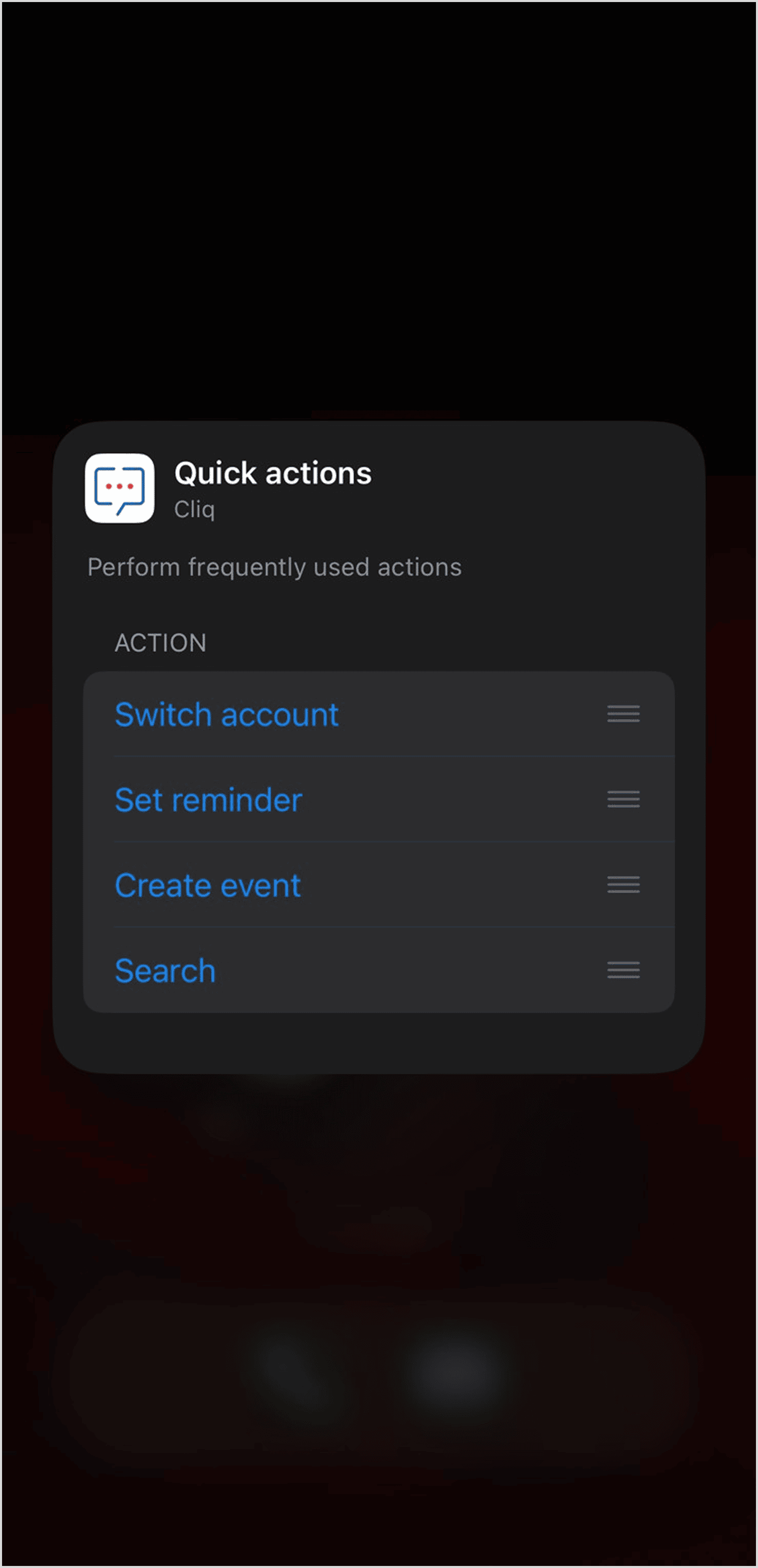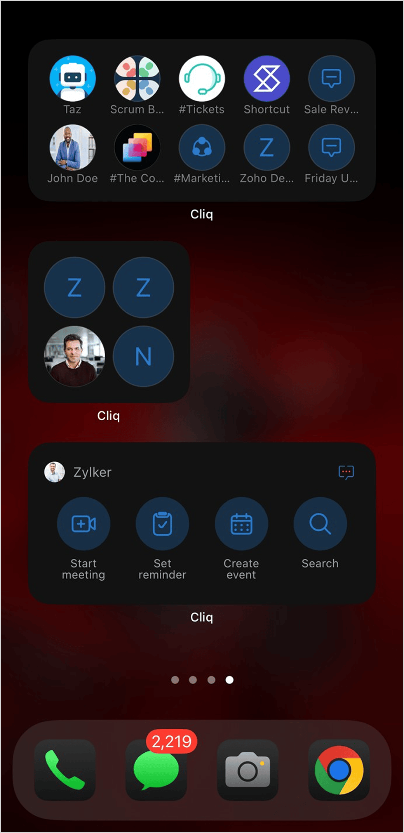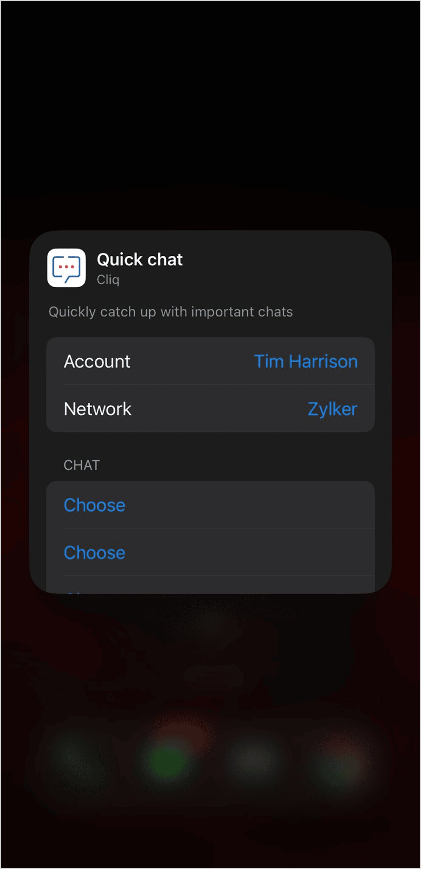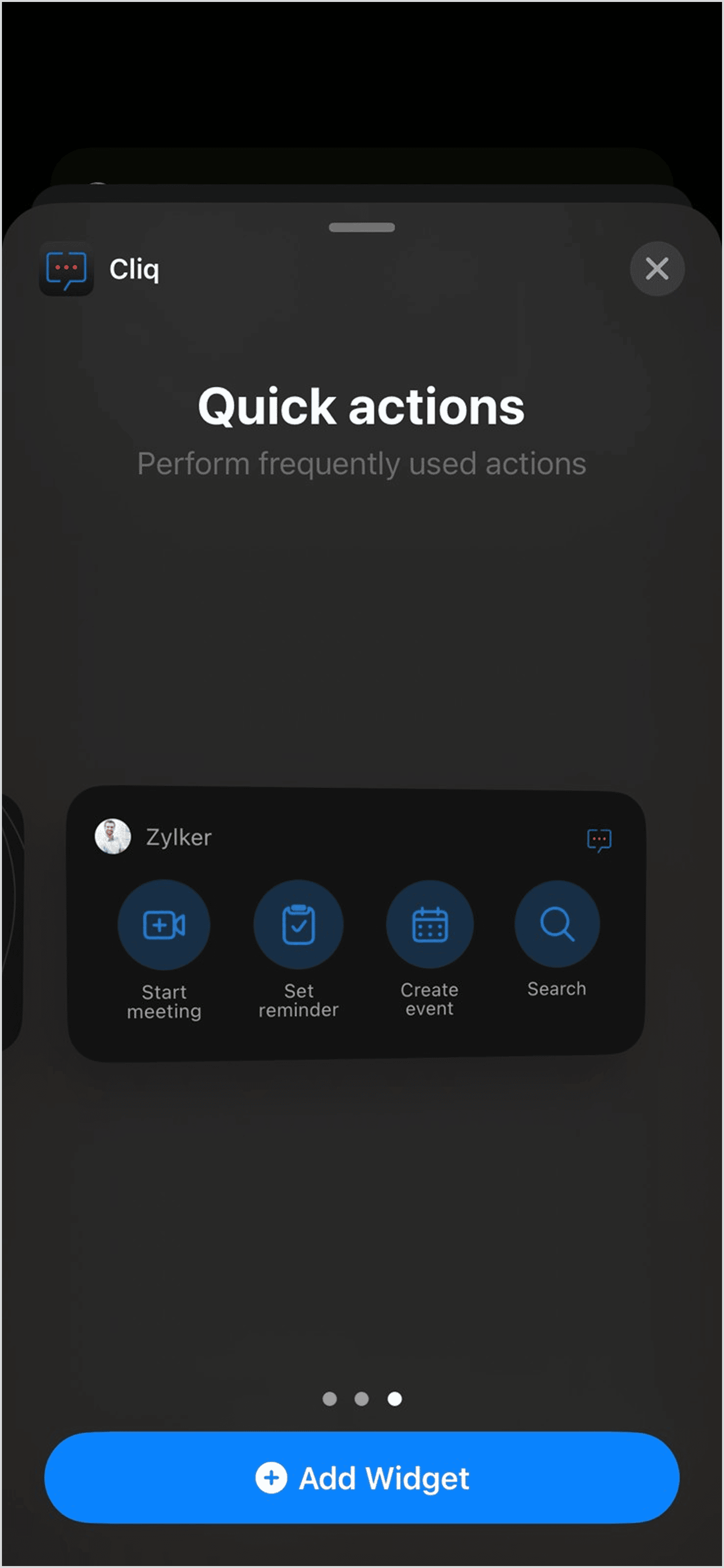 iOSでのZoho Cliqウィジェットとショートカットの使用方法