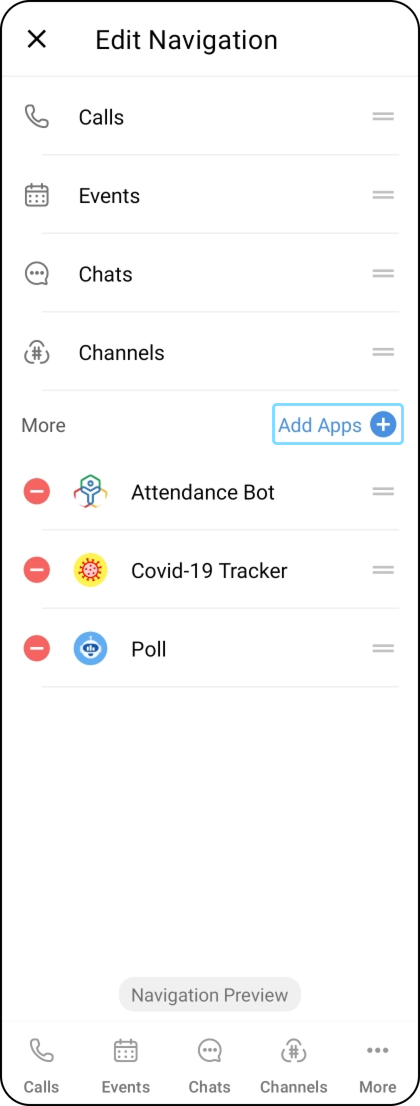 2. 「追加アプリ」を選択して、サイドバーに追加のアプリを追加するか、アプリ名の中の赤い円形のハイフン(-)オプションを使用して、既存のアプリを削除することができます。