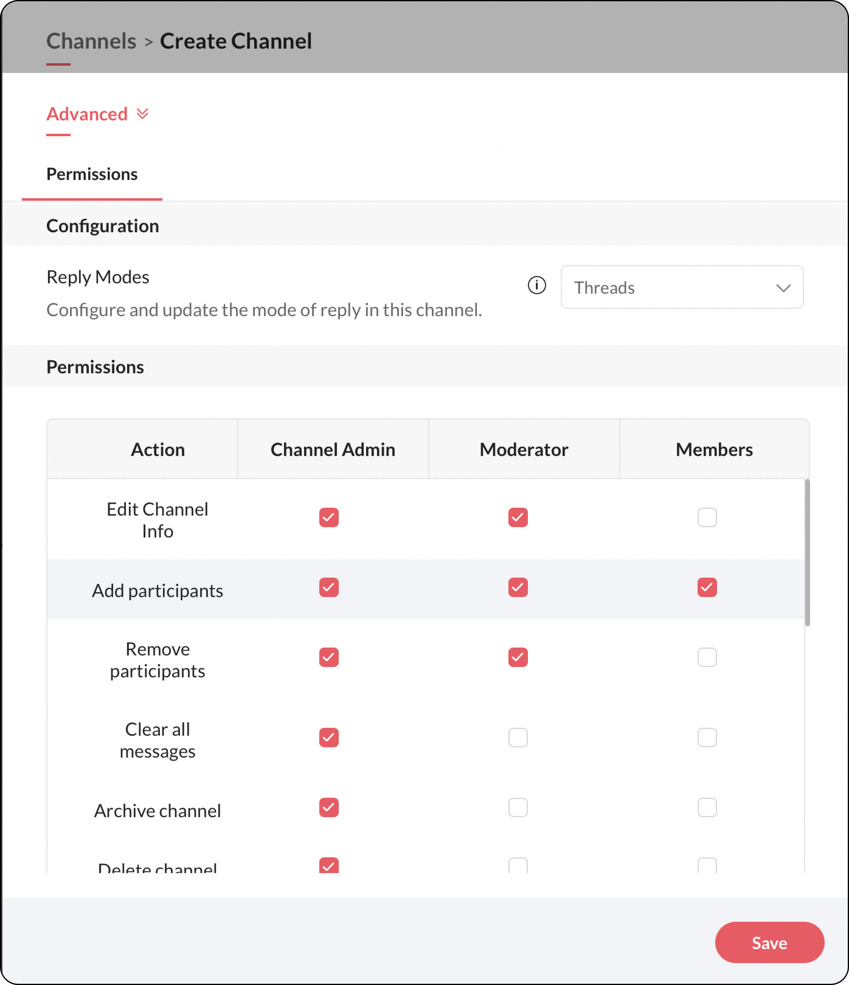 設定をクリックし、作成しているチャンネルに必要な権限を設定した後、保存をクリックしてください。