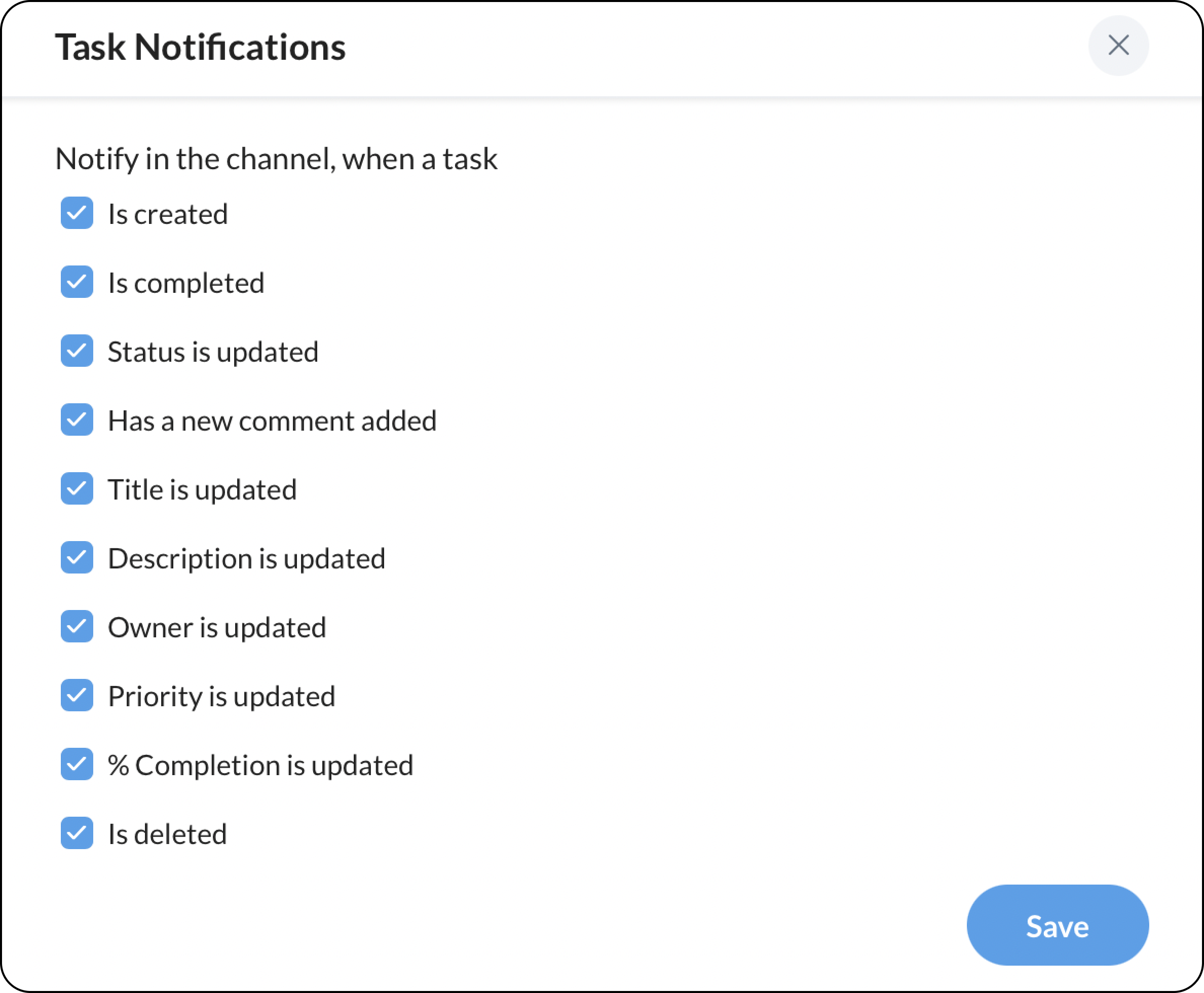 チャンネル内のタスク通知の管理