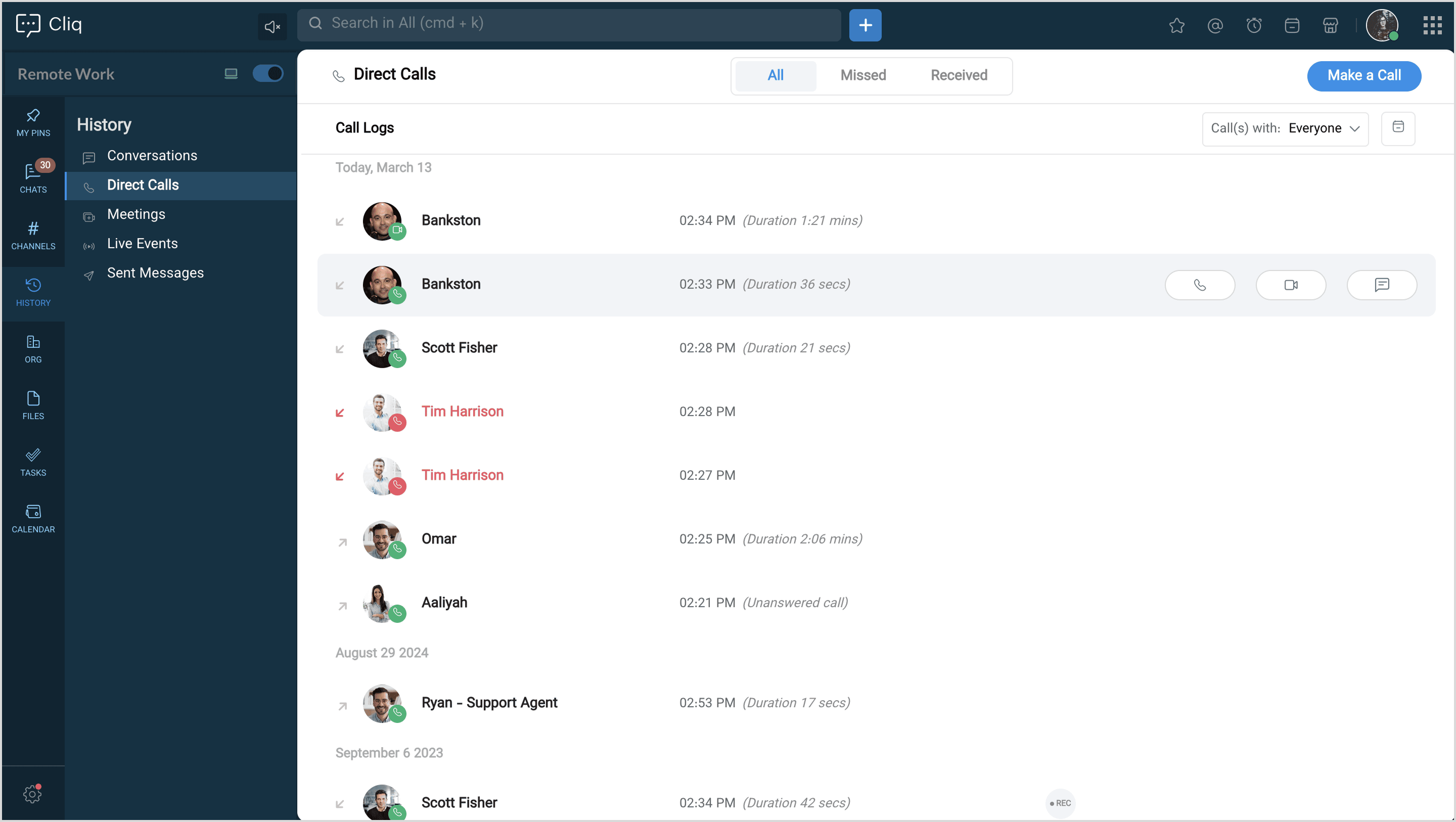 • 通話相手:特定のユーザーまたは誰でもとの通話ログを表示します。