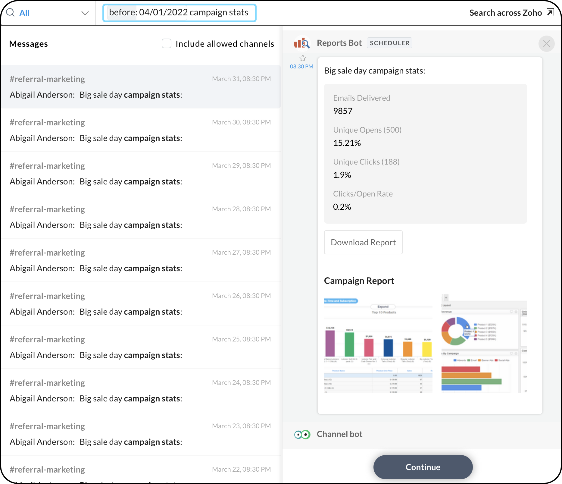 検索でより正確な結果を得るために、チャットからキーワードまたはフレーズを含めることもできます。 一覧からチャットを選択してください。