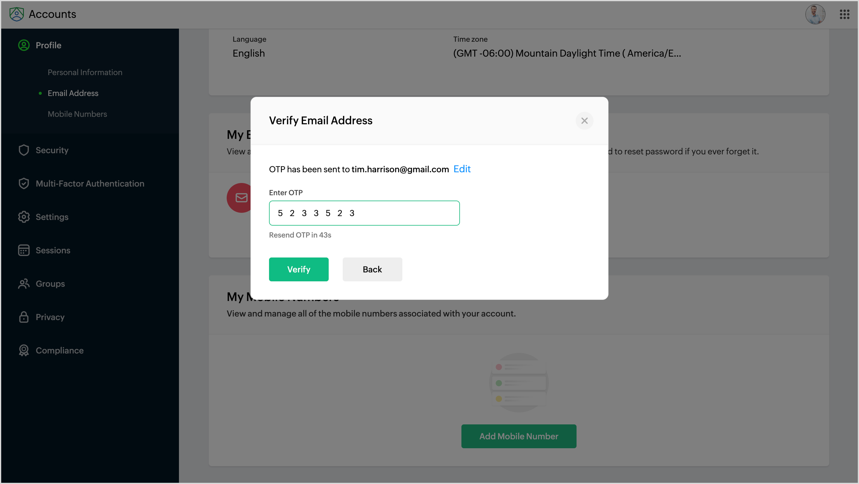 1. 認証が完了すると、セカンダリーメールアドレスが「My メール Addresses」に表示されます。
