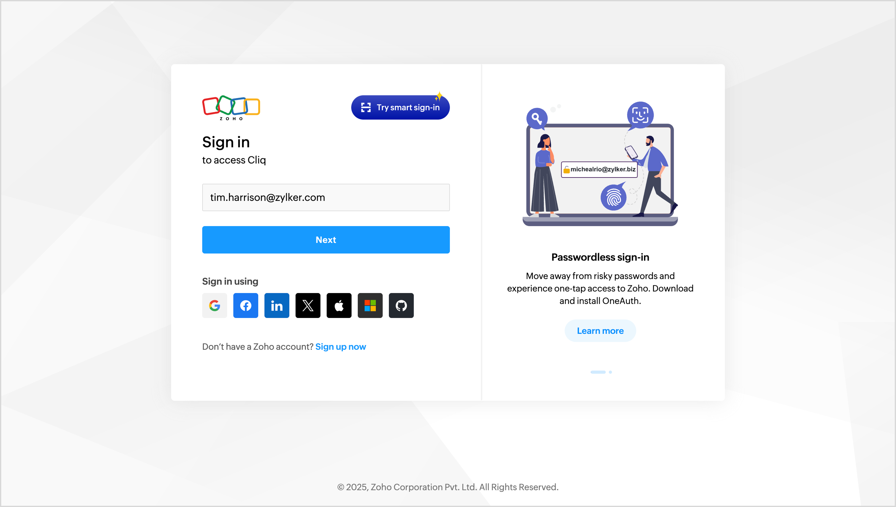 1. 標準のブラウザで www。Zoho。com/cliq/ログインする。html または http://cliq。Zoho。com/ にアクセスします。