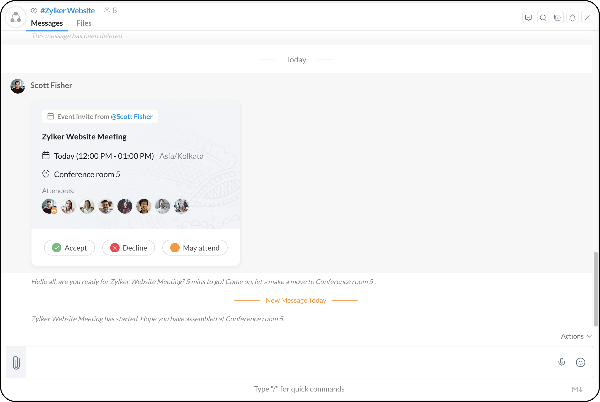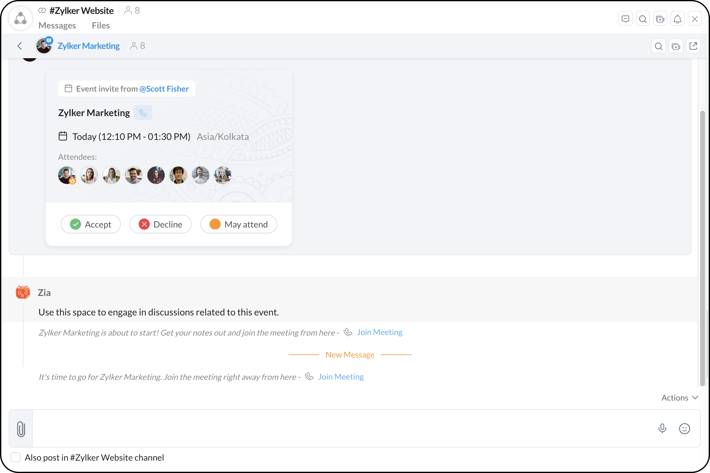 Taz Botがユーザーに通知を送信します。Ziaを含めるを選択すると、Ziaからの通知を受け取ります。