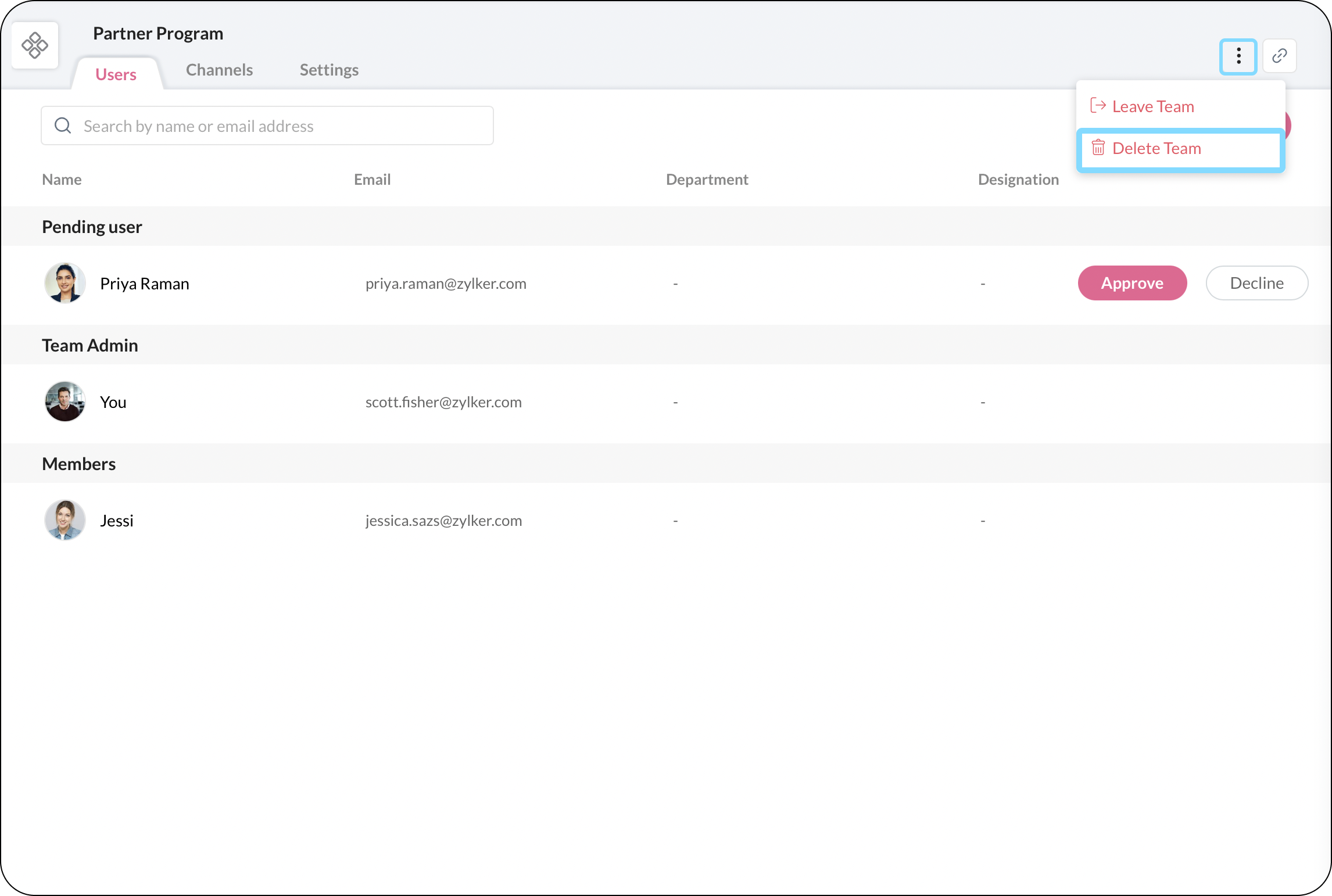 メモ: チームを削除できるのは、チーム管理者のみです。