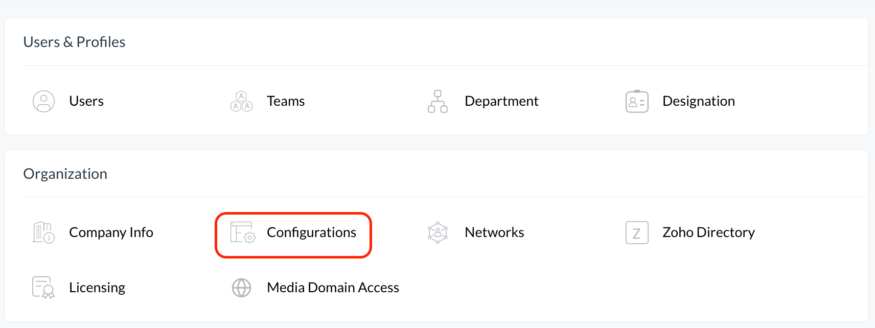 Admin Panel 画面で、[組織]の下にある[設定]をクリックします。