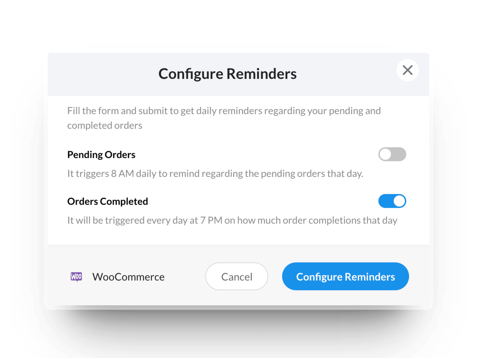 保留中や完了した注文の進捗状況を随時把握できるよう、リマインダーを設定できます。
