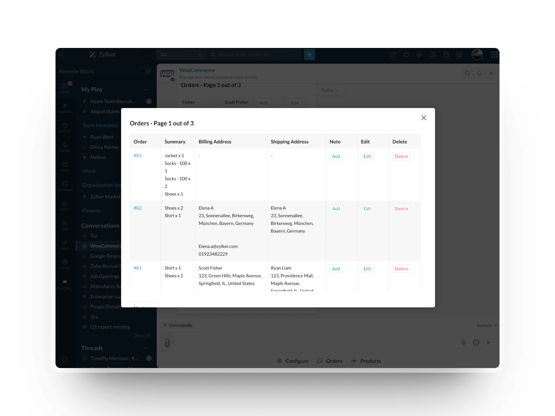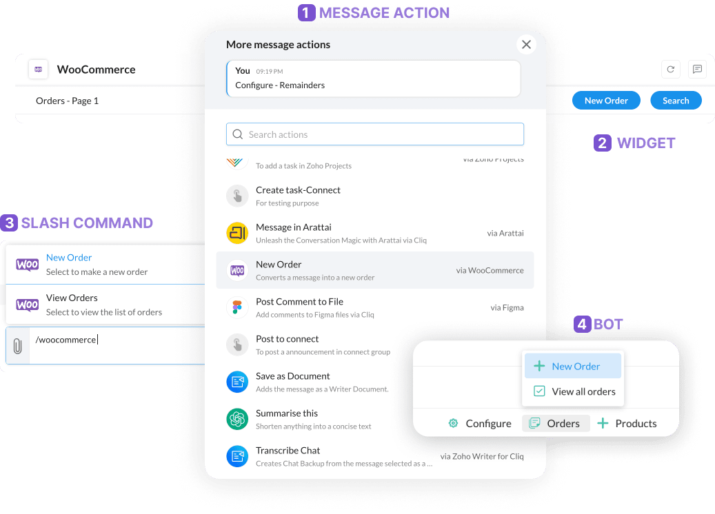 Zoho Cliq から直接、注文を簡単にアクセス・管理できます。