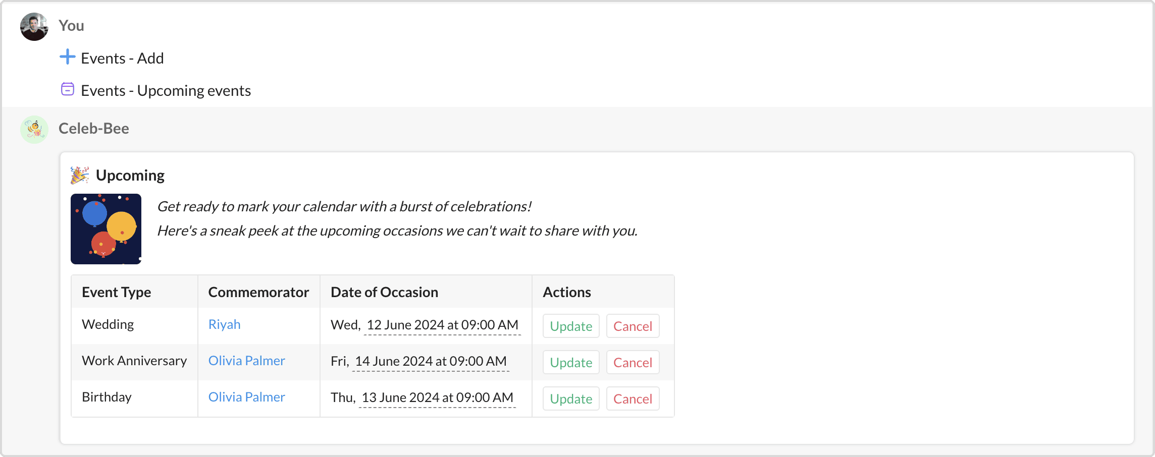 Celeb-Bee Botでイベントを追加する