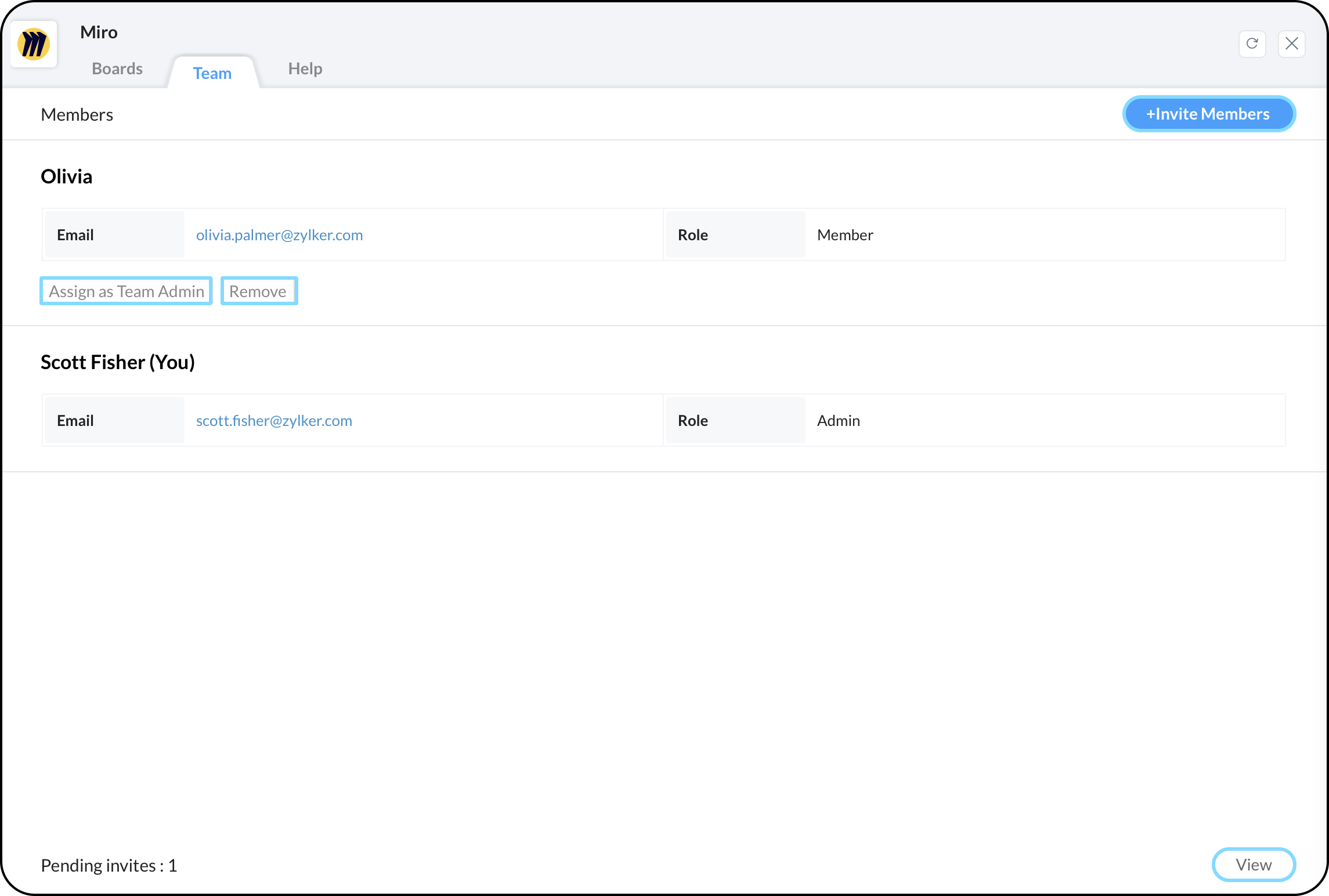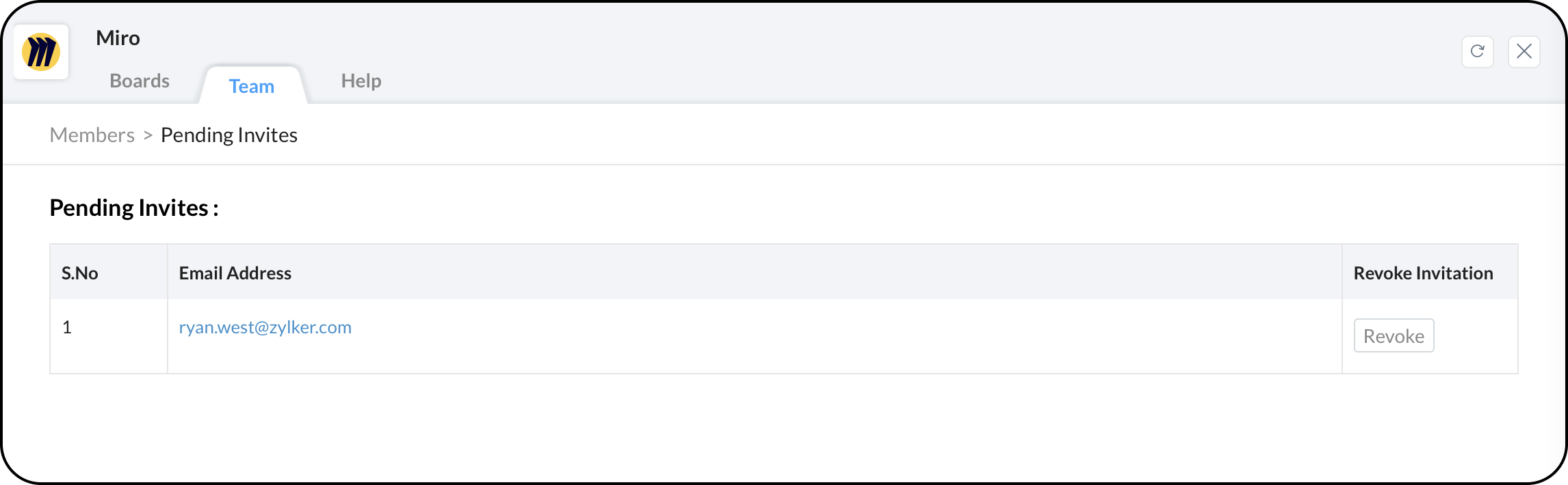 ここではメンバーの招待や、チームメンバーおよび保留中の招待の一覧を確認できます。