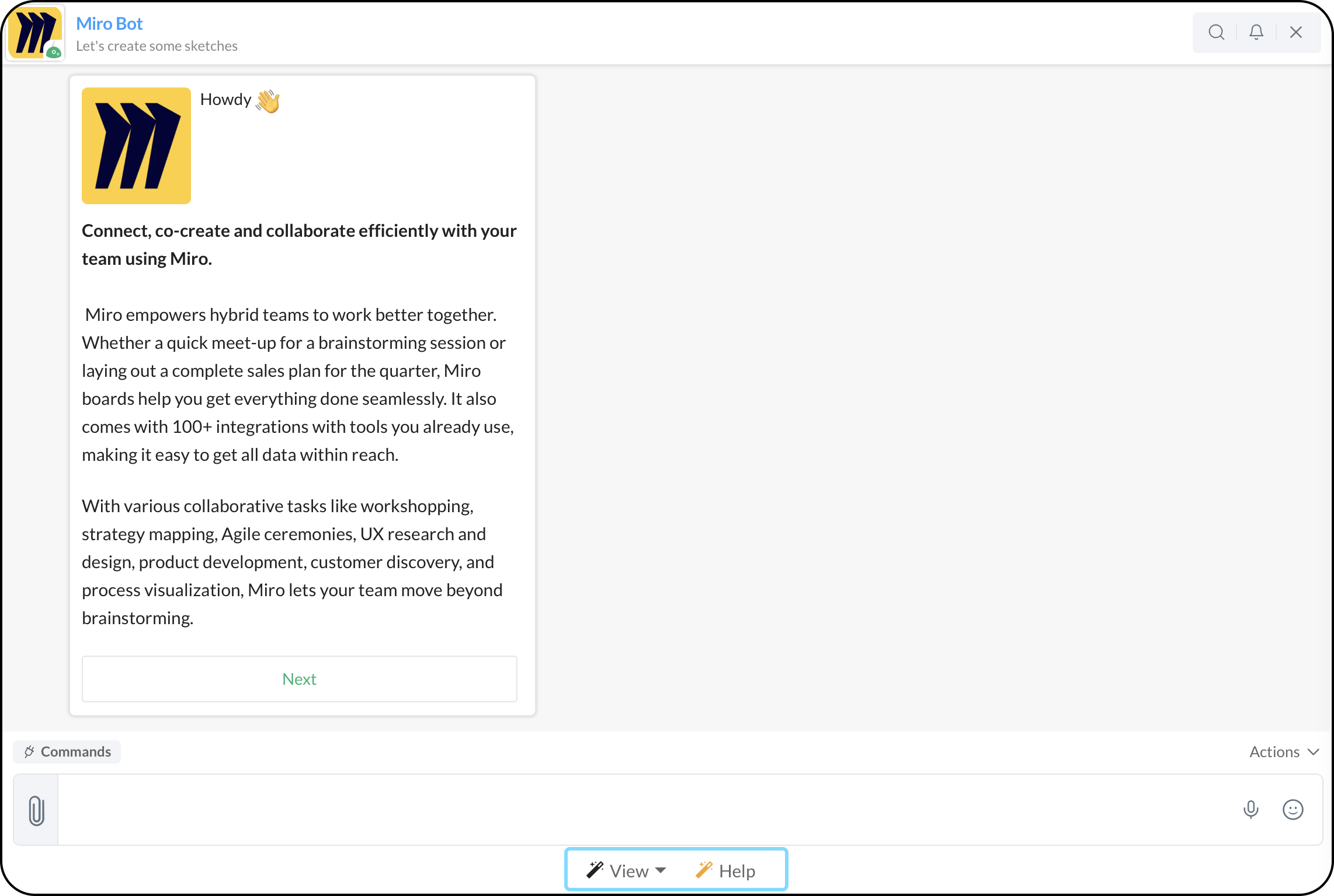 Miroボットは、ユーザーが3つの手順で開始できるよう案内するメッセージを表示します。