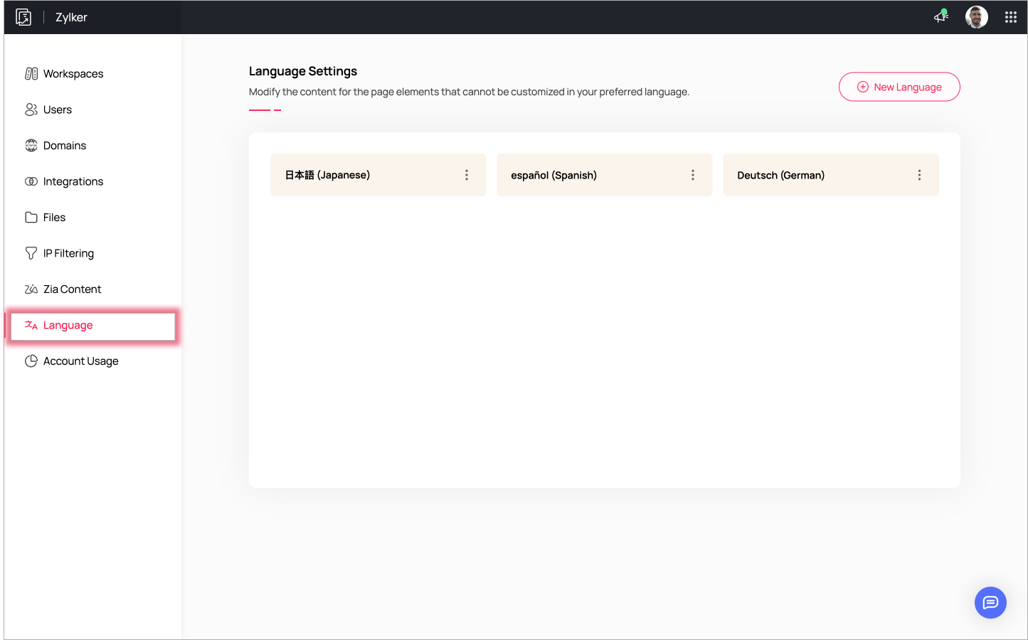 2. 設定メニューで言語に移動し、 新規言語をクリックします。