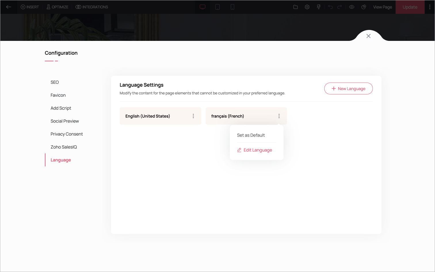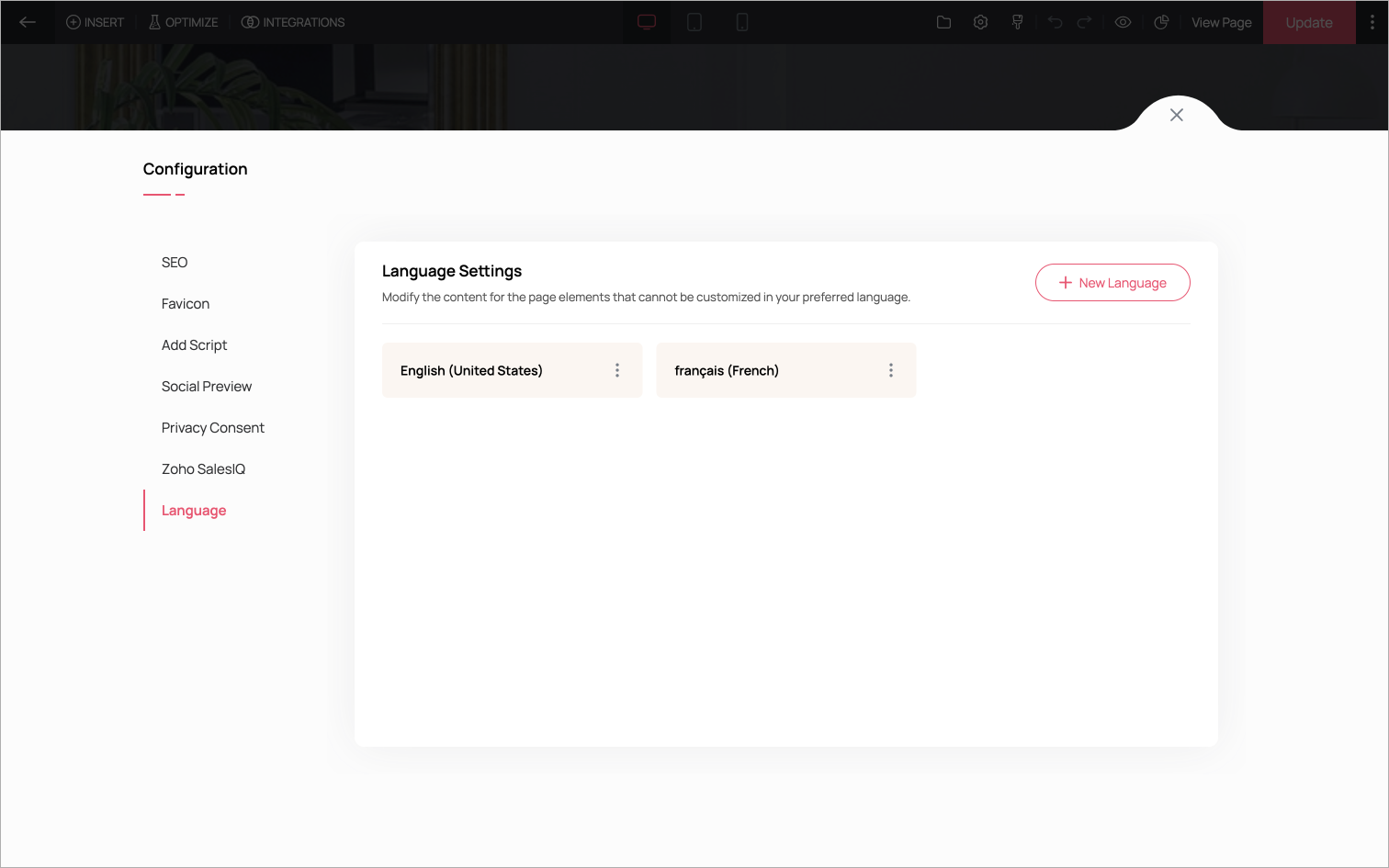 Zoho LandingPageでは、複数の言語をランディングページに連携することが可能です。