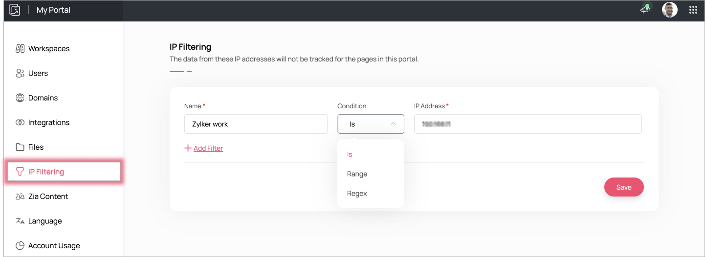 Zoho LandingPageはIPフィルタリング機能を提供しており、ランディングページで訪問者情報を収集する必要がないIP 差出人リストを指定できます。