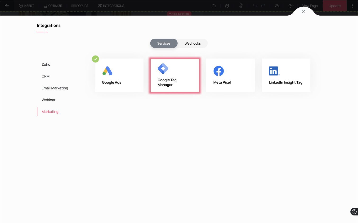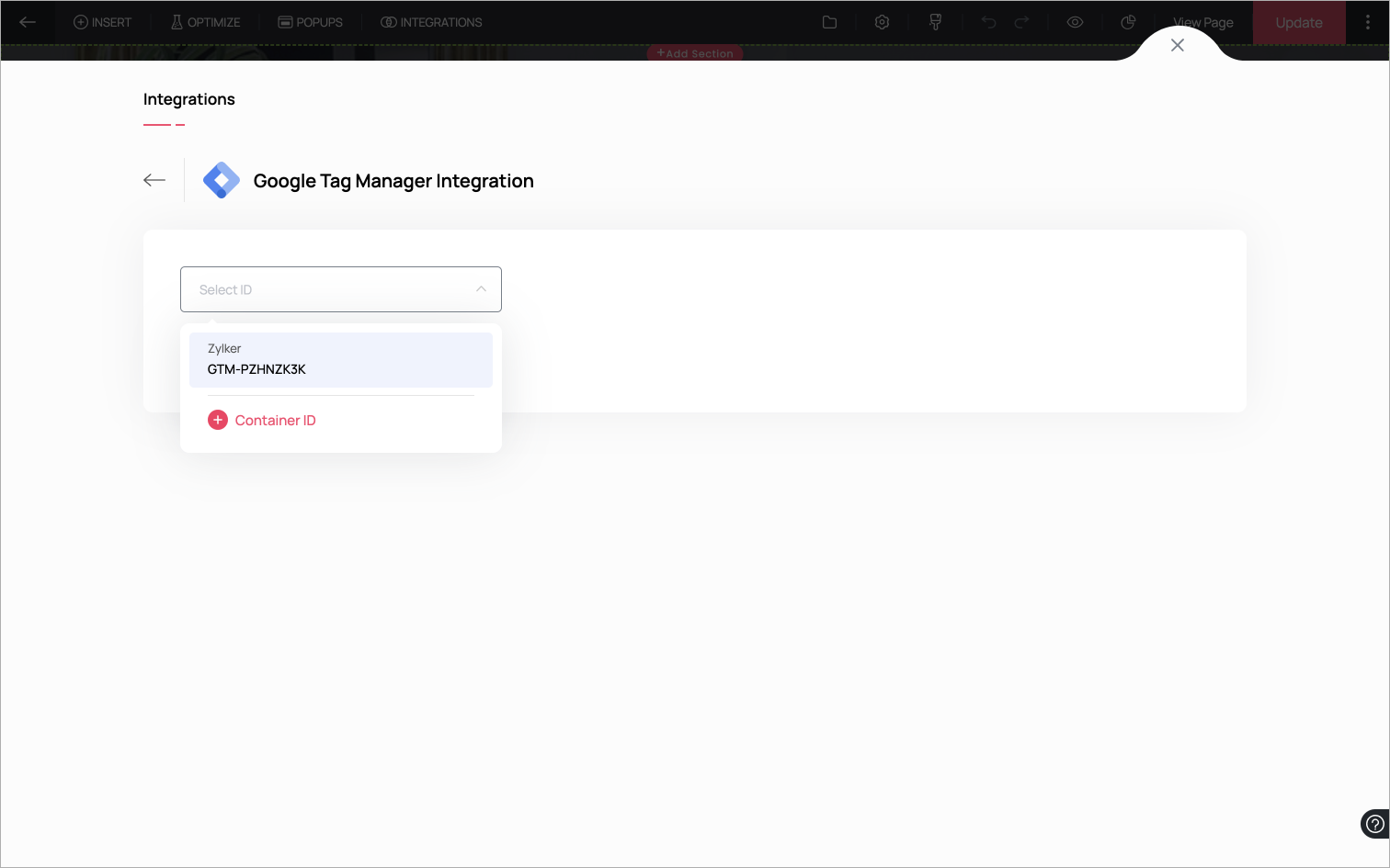 3. Google Tag ManagerアカウントとZoho LandingPageポータルの連携が完了したら、ランディングページとGoogle Tag Managerの連携を開始できます。