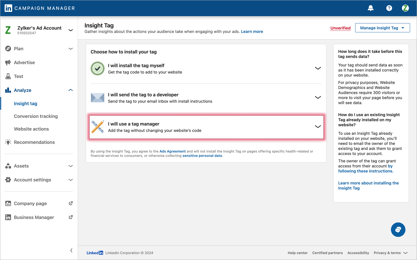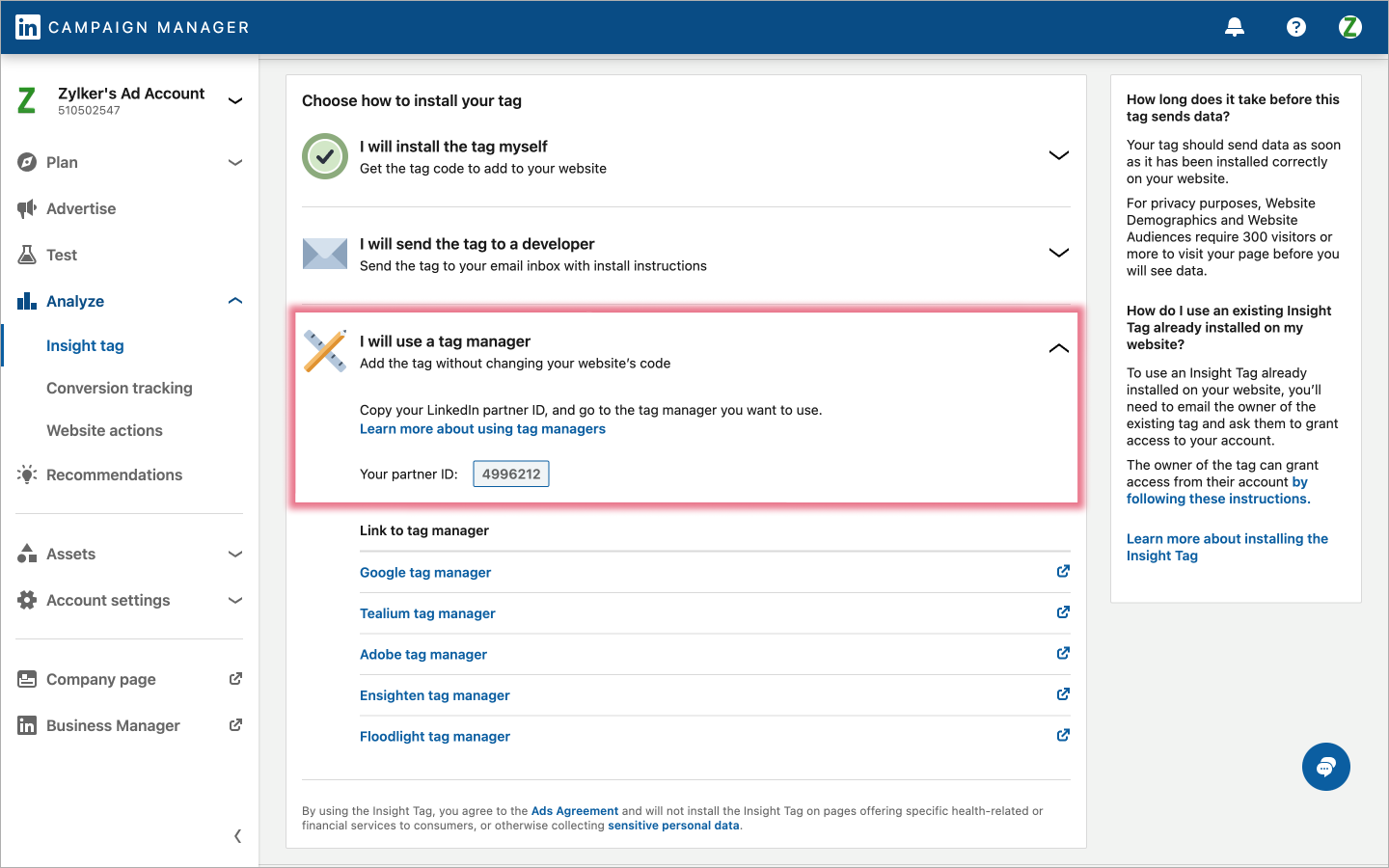 あなたのLinkedIn Insight Tagにアクセスするには