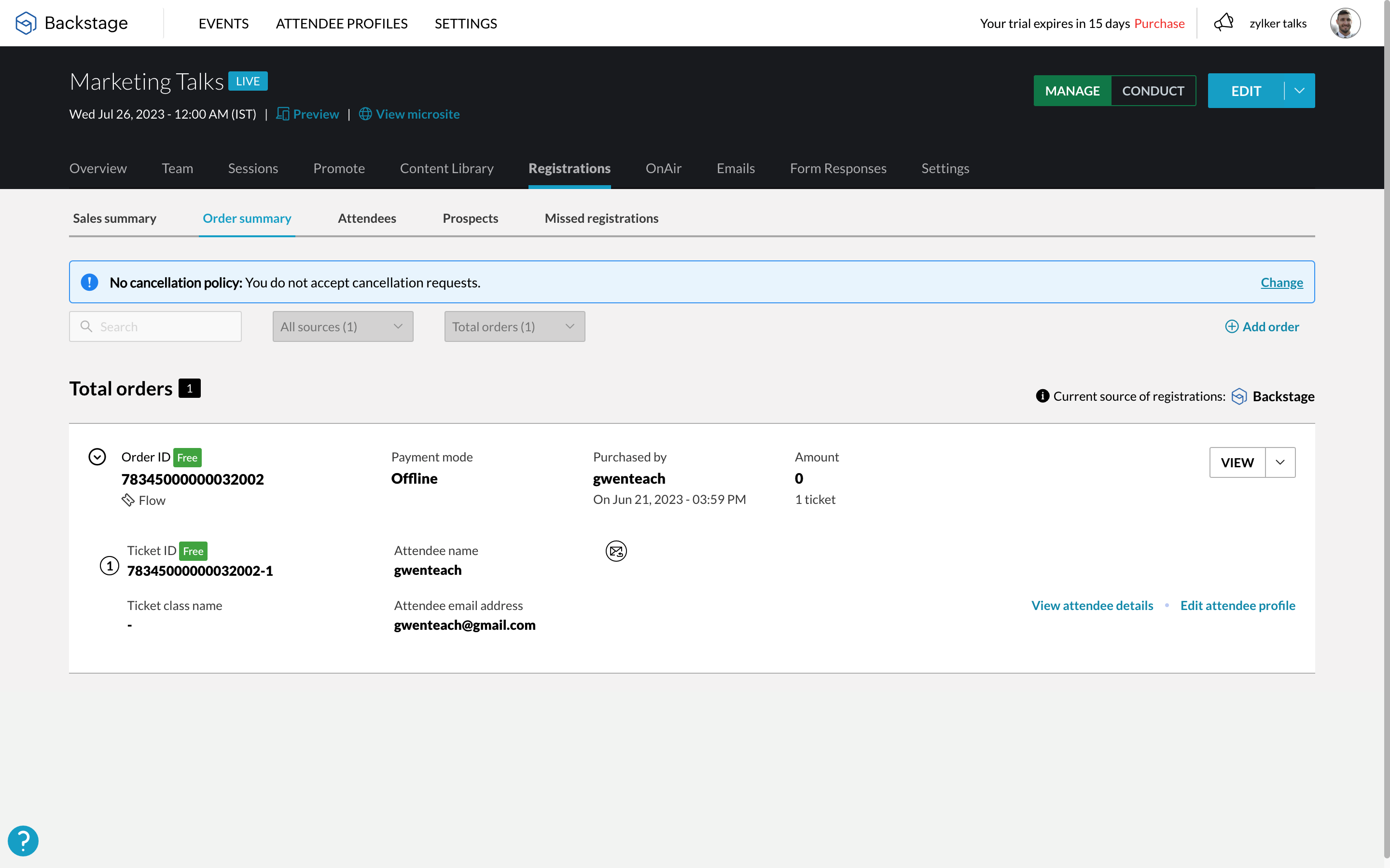 5. ユーザーがこのランディングページでフォームを送信すると、リード情報は自動的にZoho BackstageアカウントのRegistrationsに送信されます。