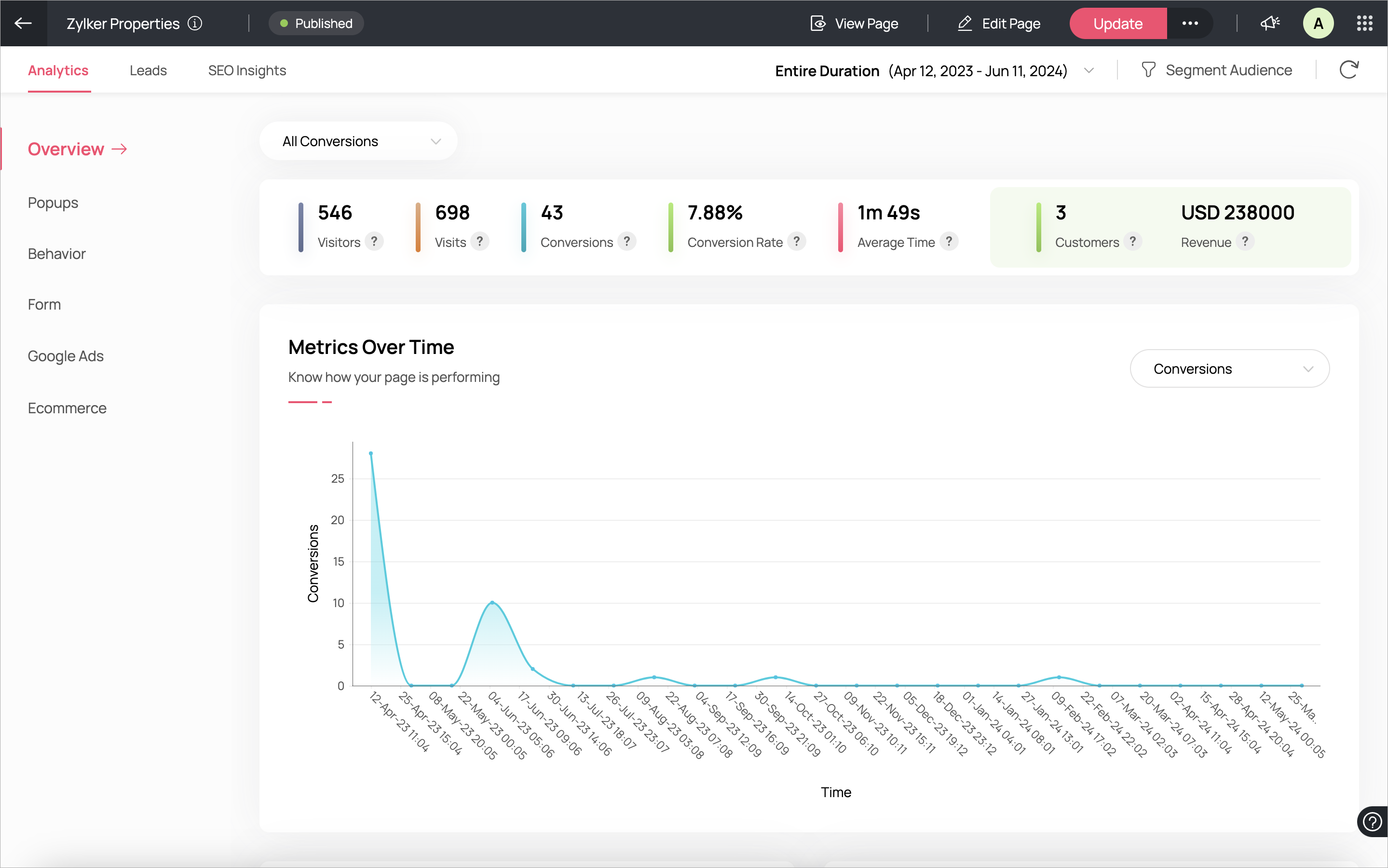 ランディングページとGoogle広告、Zoho CRMを連携することで、ユーザーはマーケティングキャンペーンのパフォーマンスを各段階で効果的に把握できます。PPC広告やランディングページ、CRMデータベースの進捗を追跡し、顧客や作成済み売上について貴重なインサイトを得ることが可能です。