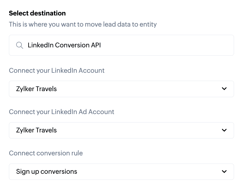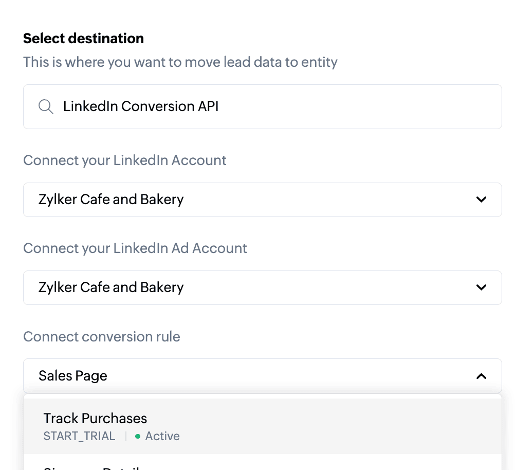 Zoho CRM と LinkedIn Conversions API を接続するには