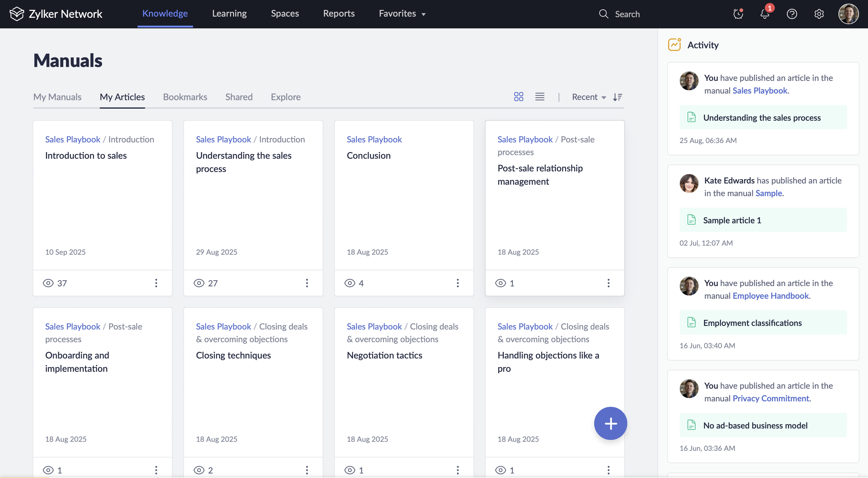 1. 操作画面でKnowledgeをクリックし、My Articlesに移動します。