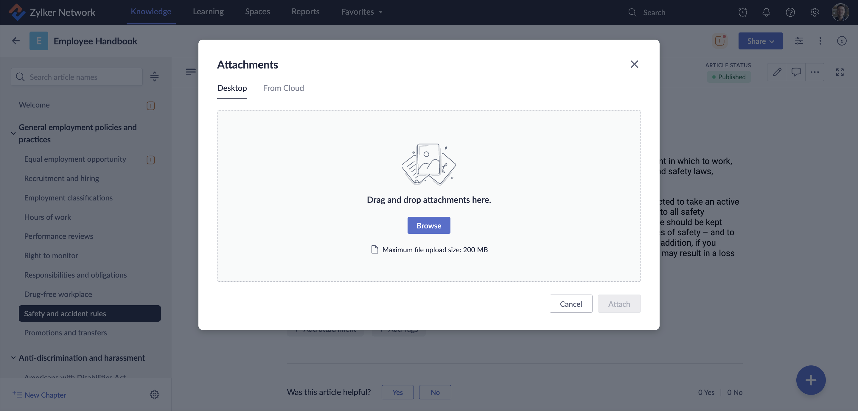 Zoho 文書、Google Drive、Dropbox、OneDrive、Box、Evernote からも添付ファイルを追加できます。