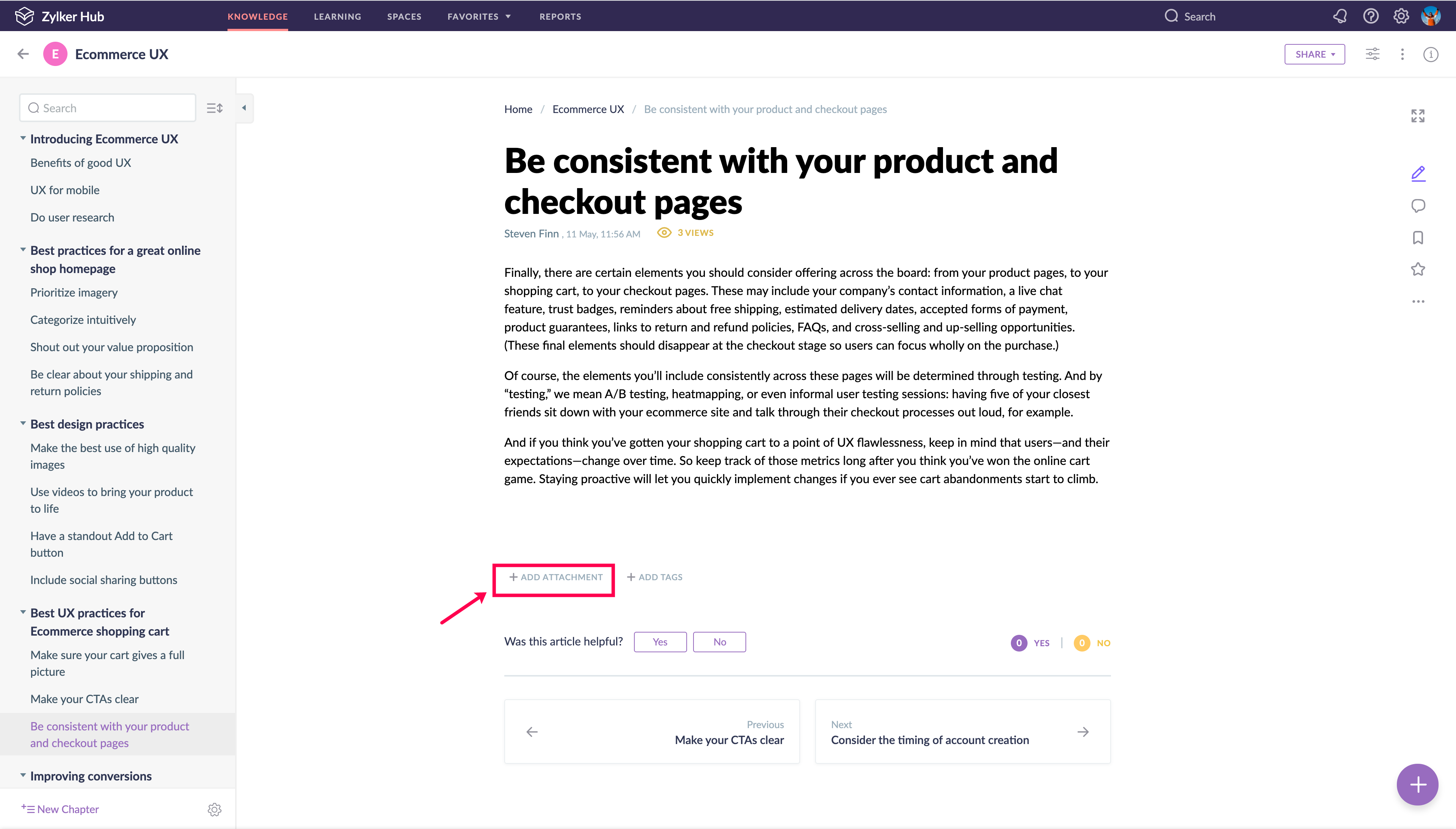 記事にすでに添付ファイルがある場合は、追加アイコン()を既存の添付ファイルの横にクリックして、新たに添付ファイルを追加できます。