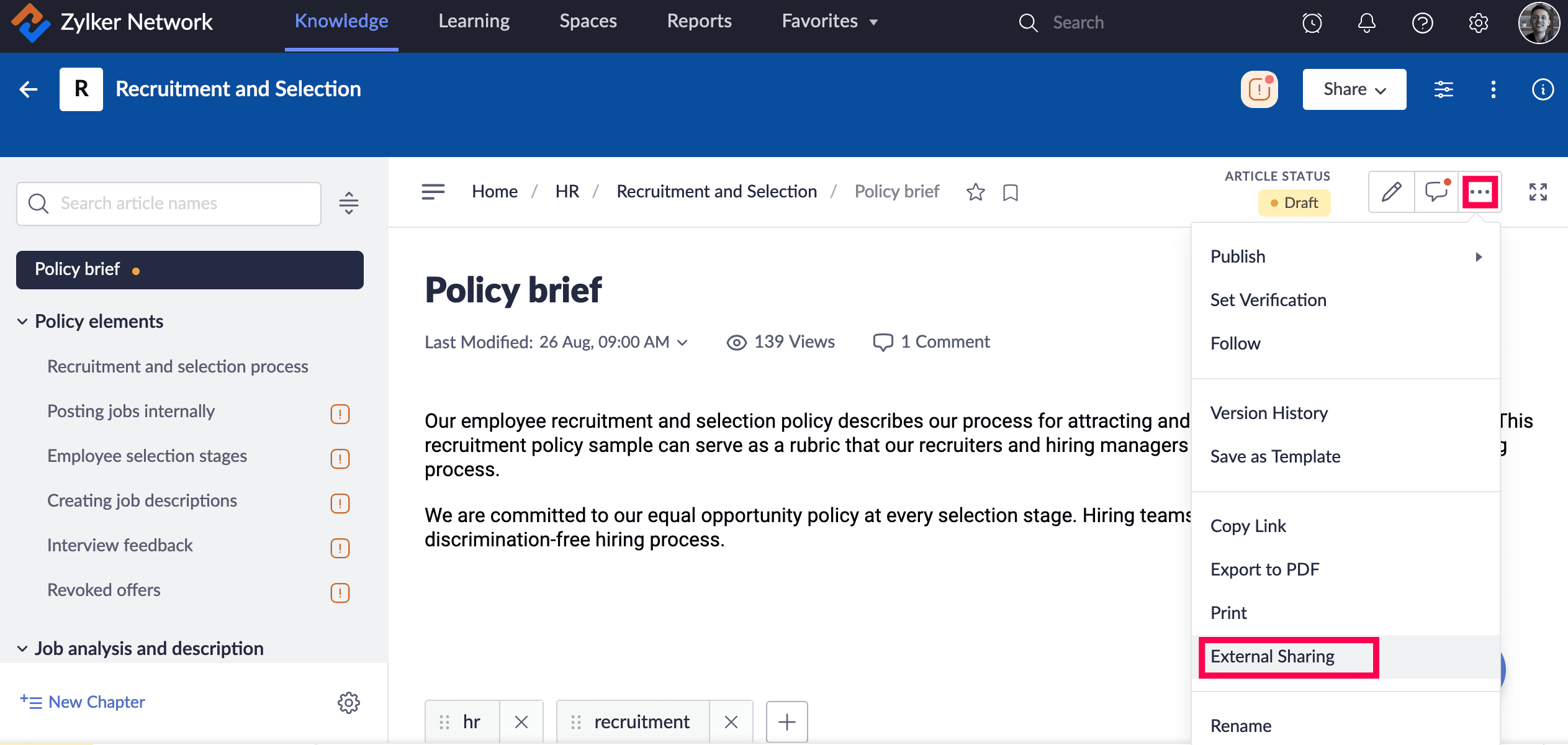 Article External Sharing オプションを有効にします。