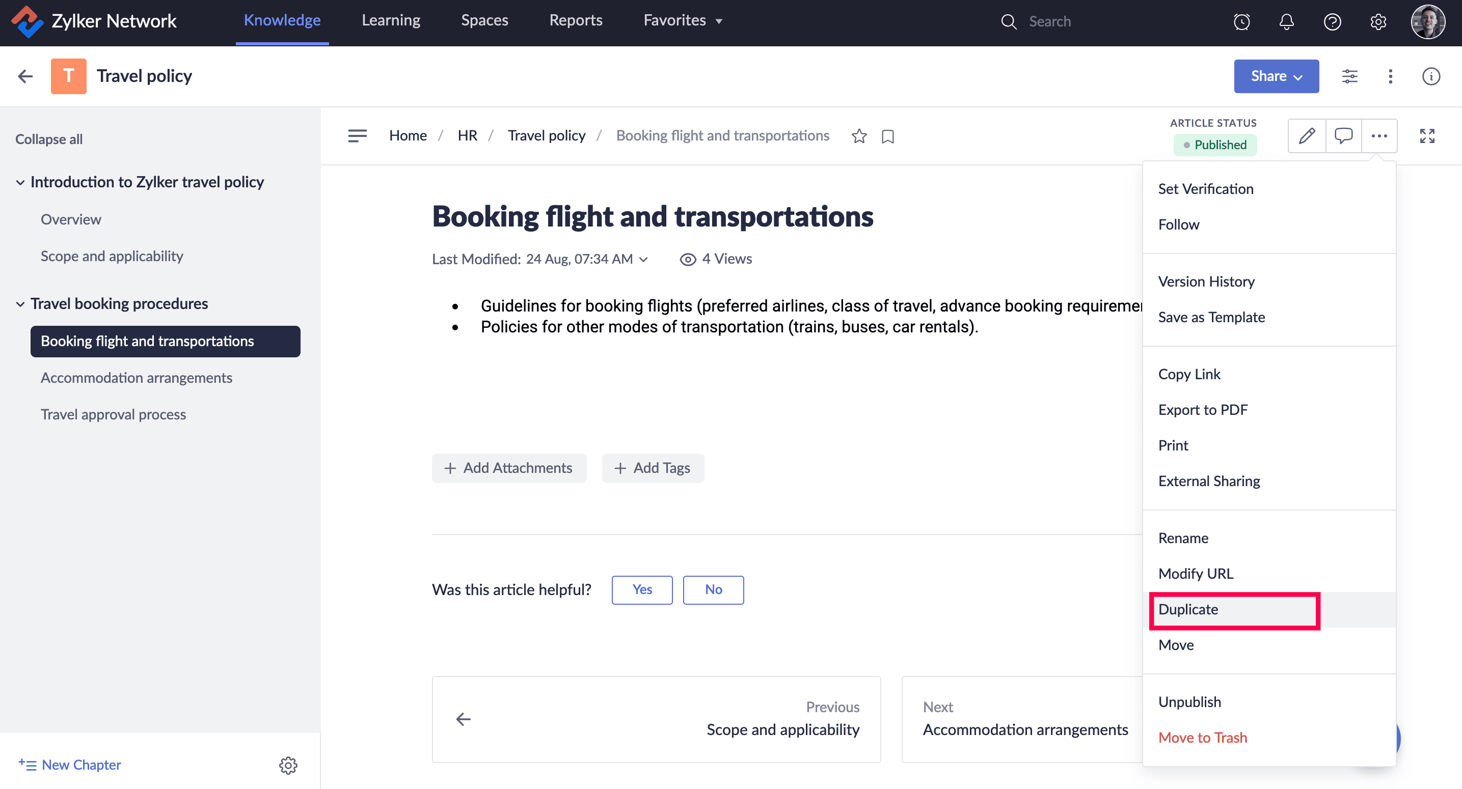 3. 記事のその他の設定()アイコンをクリックし、複製するを選択します。複製された記事が作成されます。