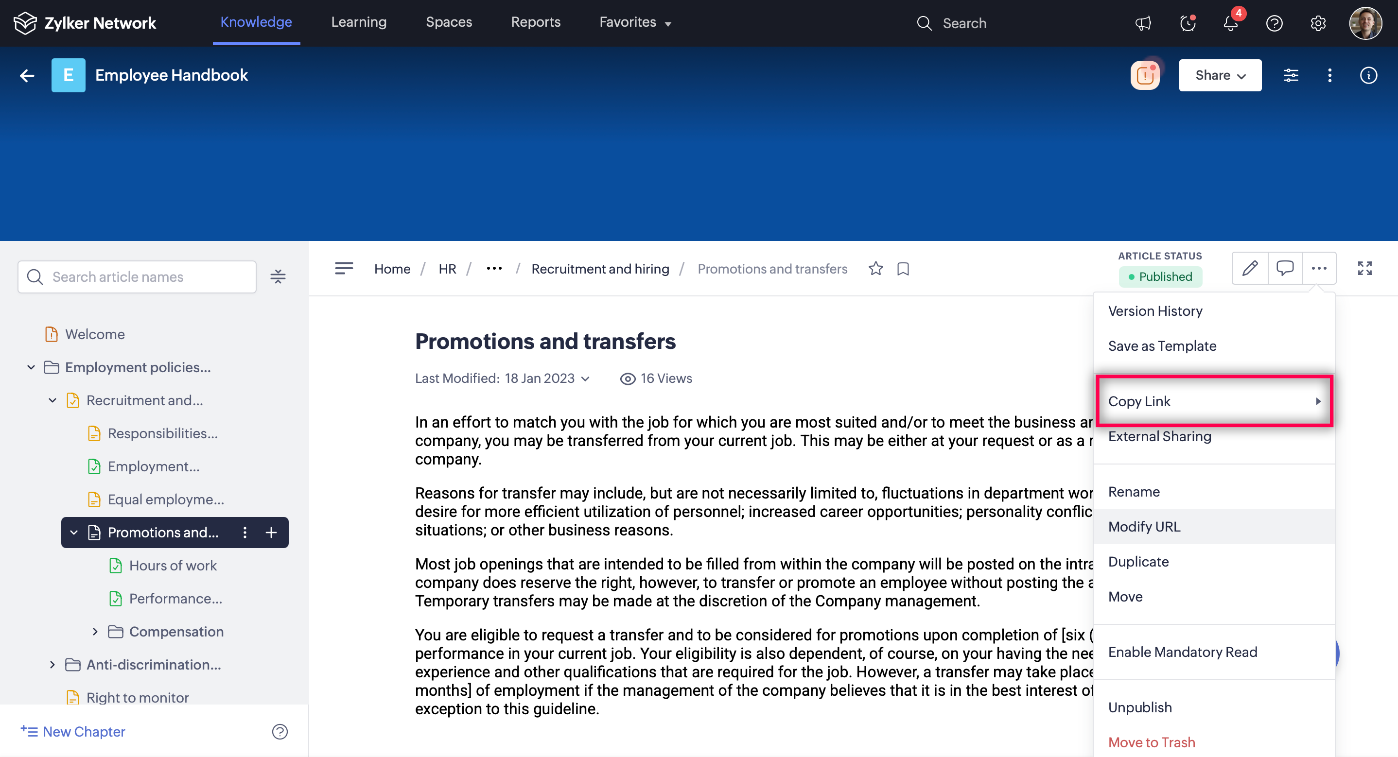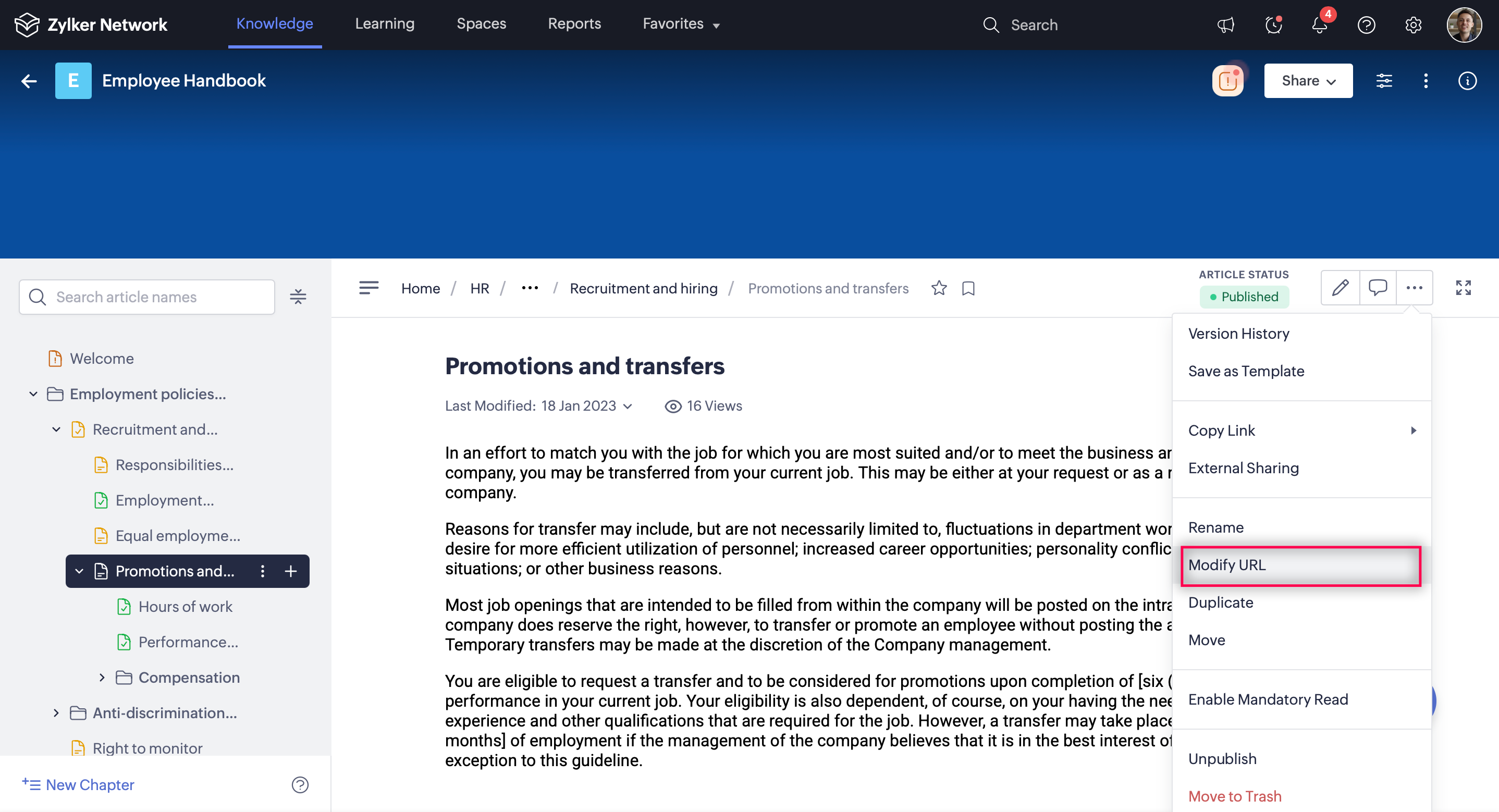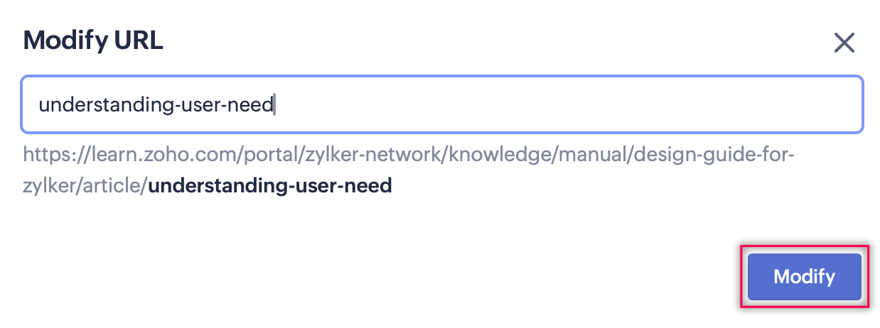 URL がすでに存在する場合は、エラーメッセージが表示されます。別の新しい URL を入力し、Modify をクリックします。