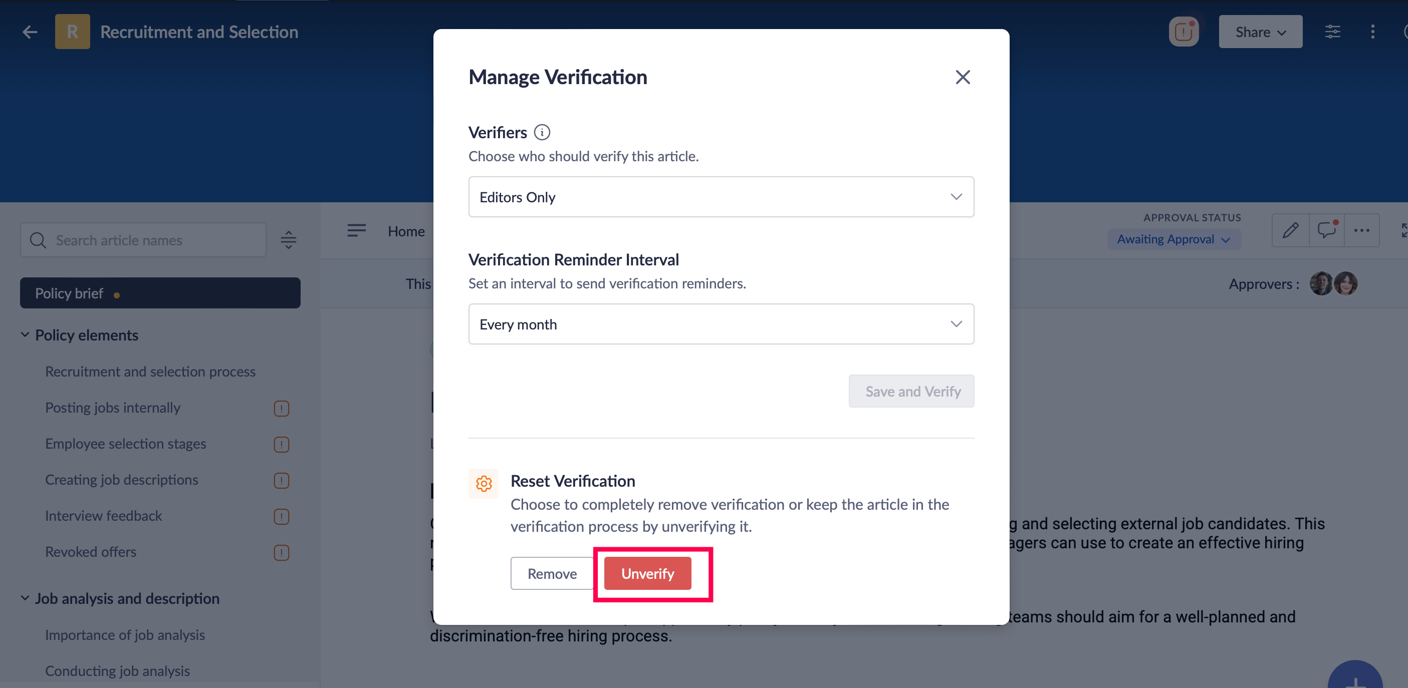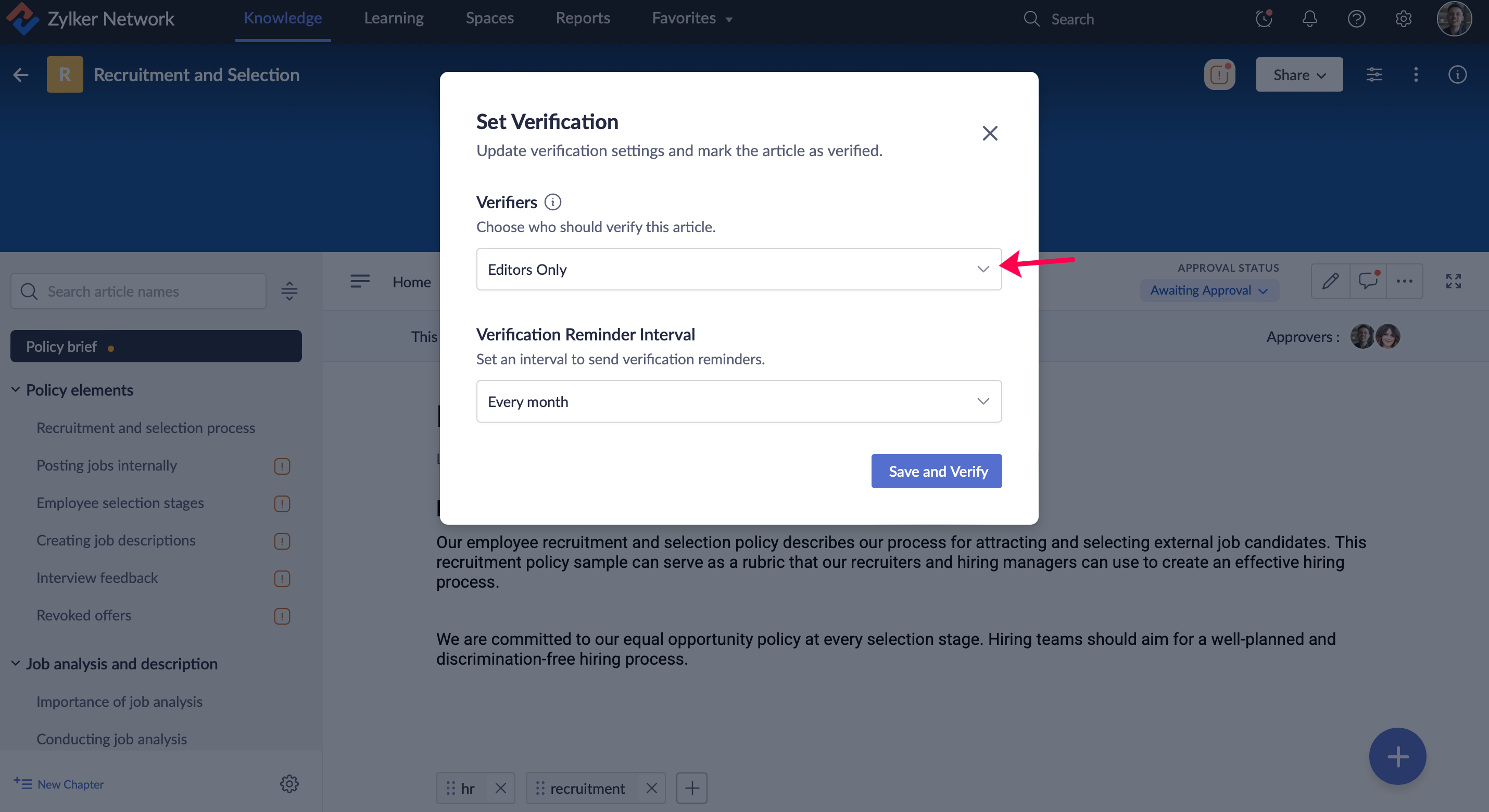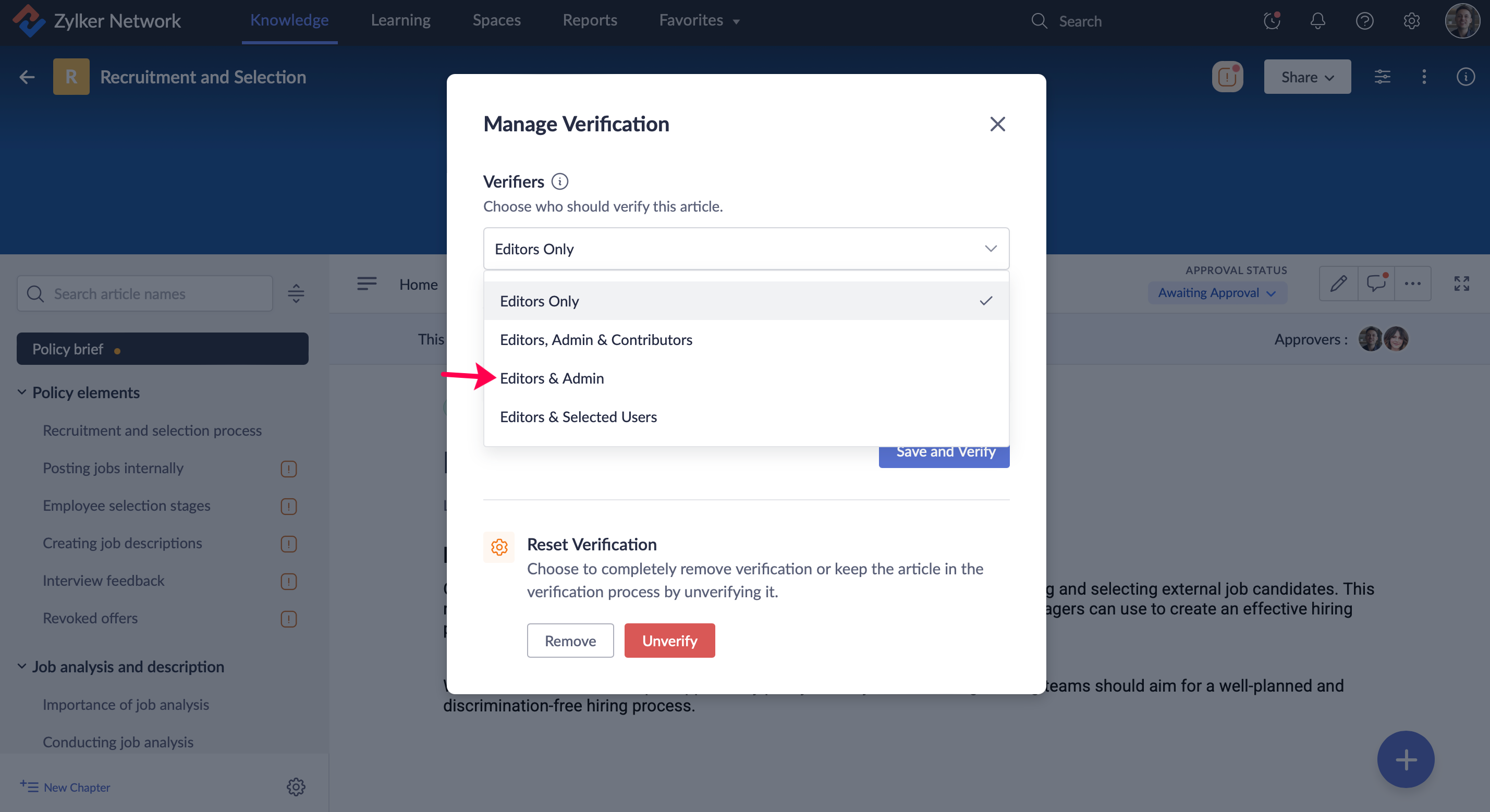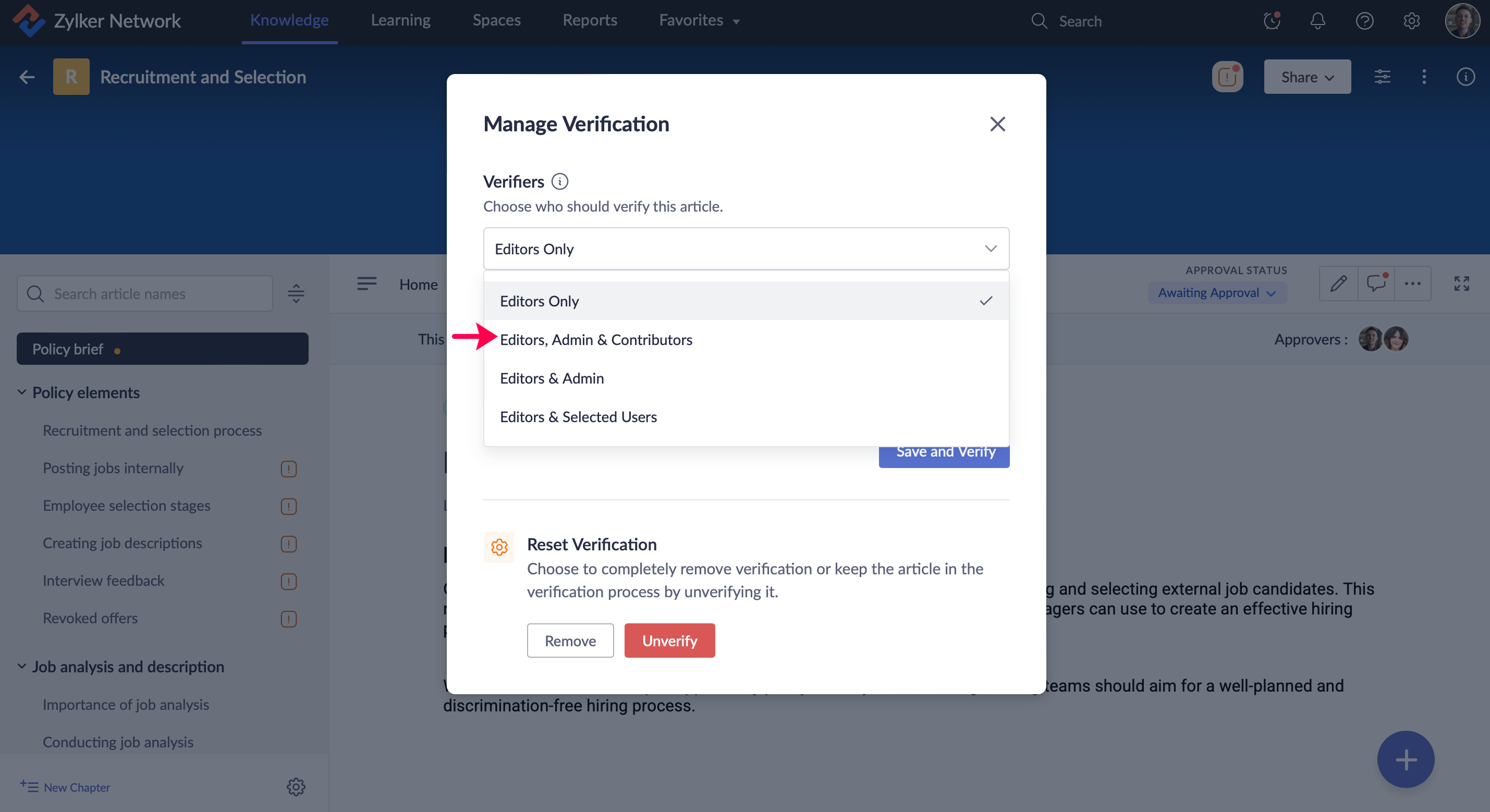 1. Verifiersセクション下のドロップダウンからEditors, Admins & Contributorsを選択します。