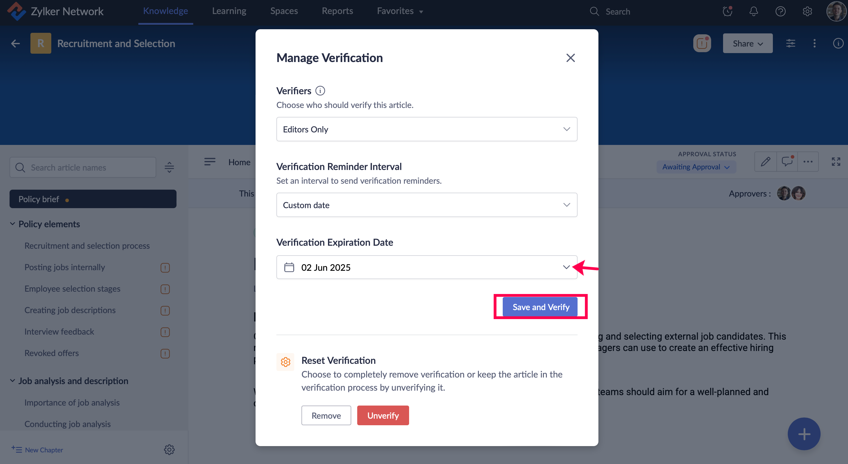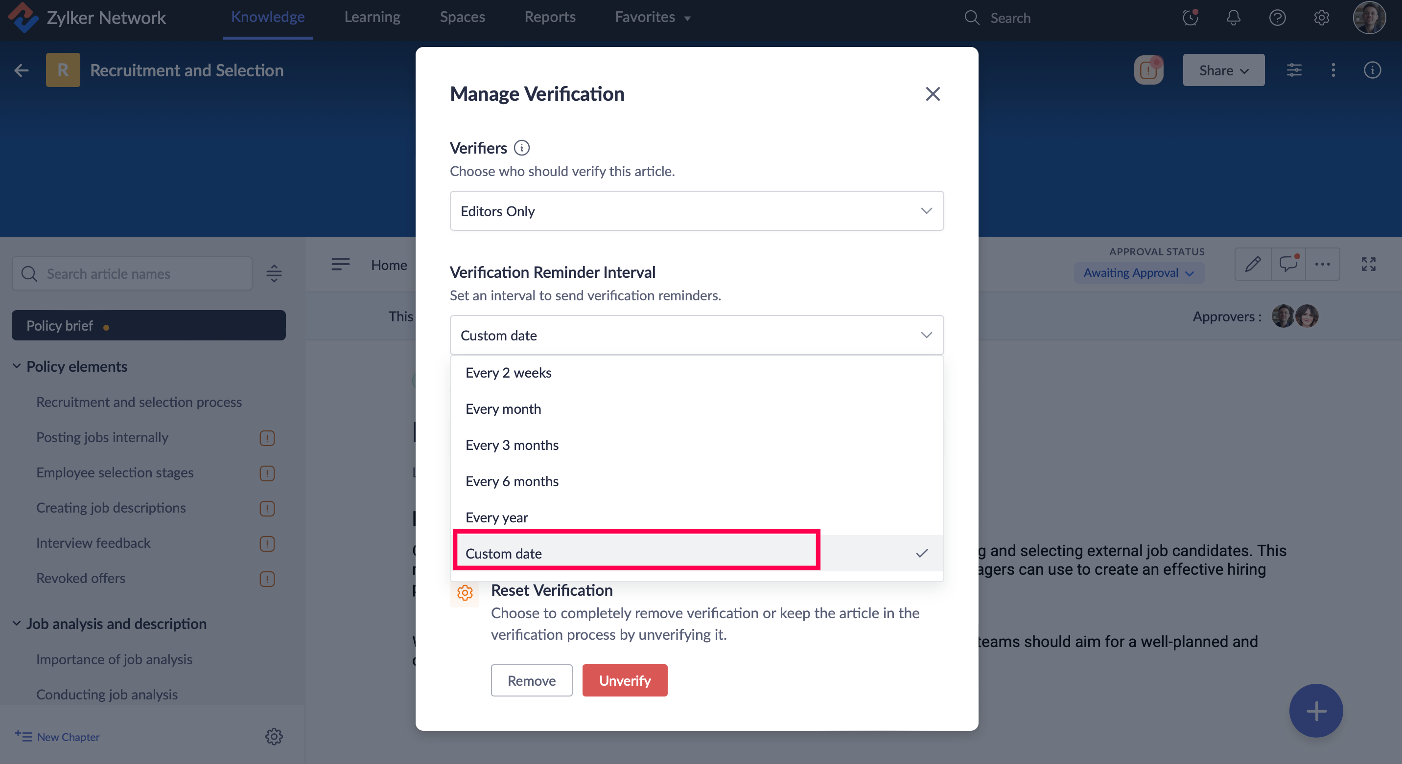 Verification Intervalのドロップダウンから独自の日付を選択します。