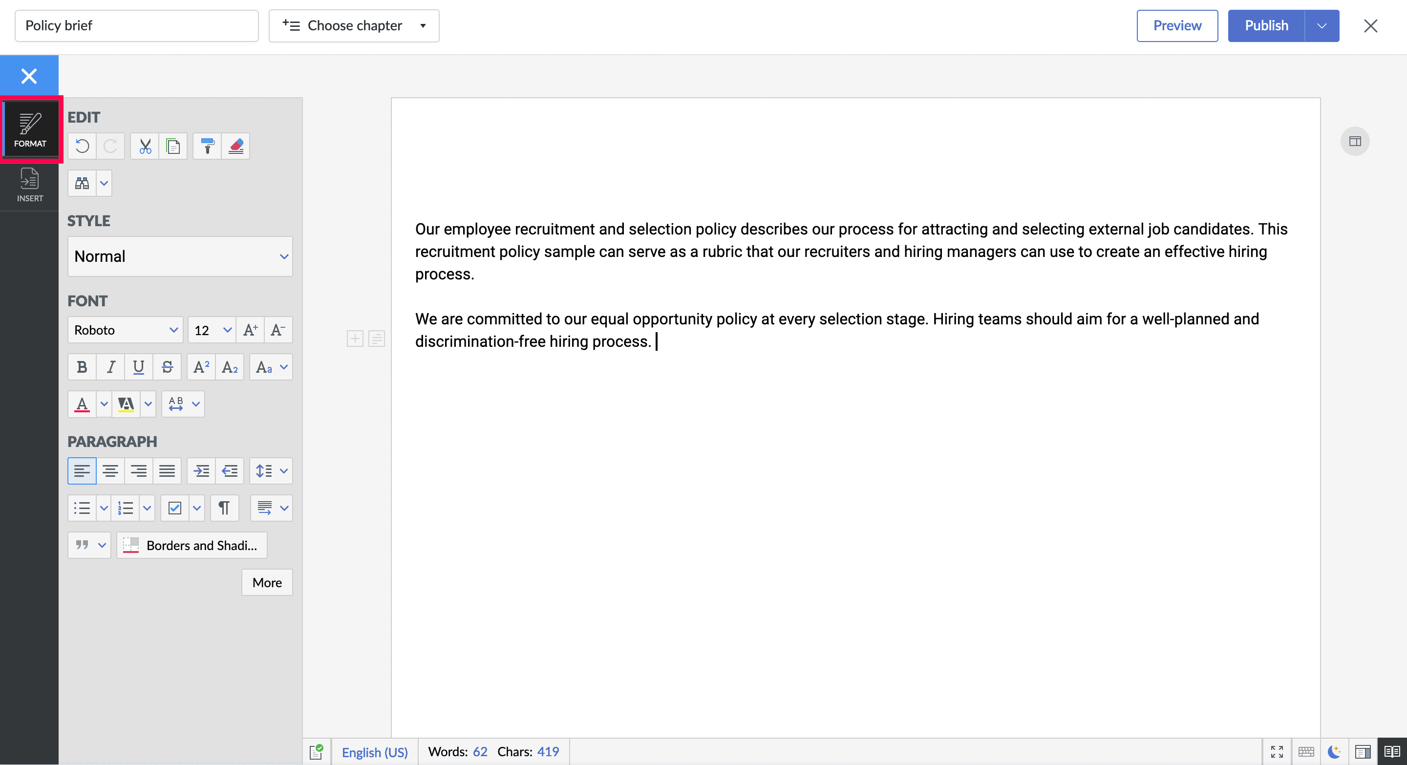 エディターの形式オプションを使用すると、記事の内容をカスタマイズして、ハブの読者に希望通りの見た目で表示できます。形式では見出しスタイルを利用したコンテンツ整理や、チェックリストの追加、その他多くの機能が利用可能です。
