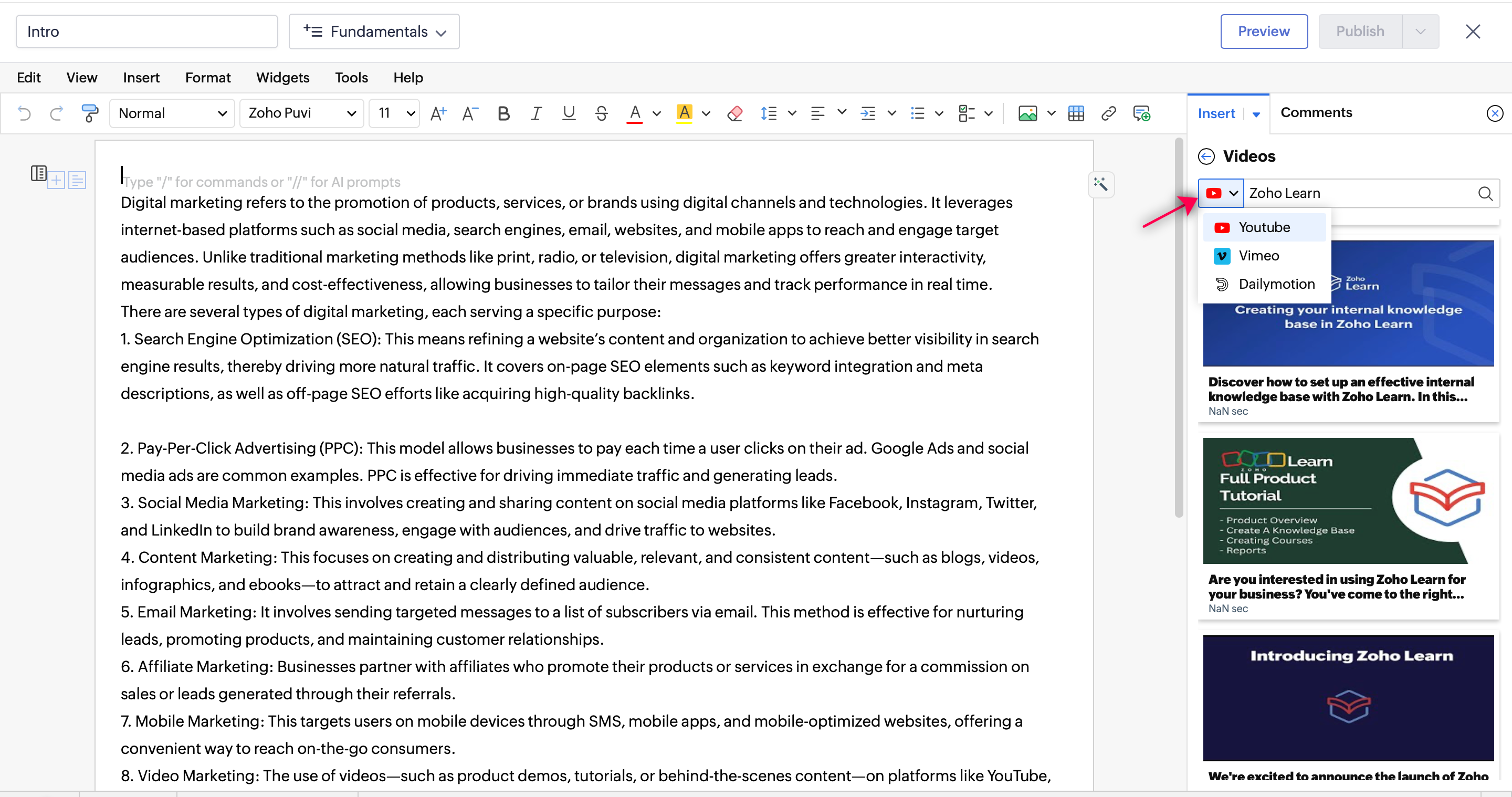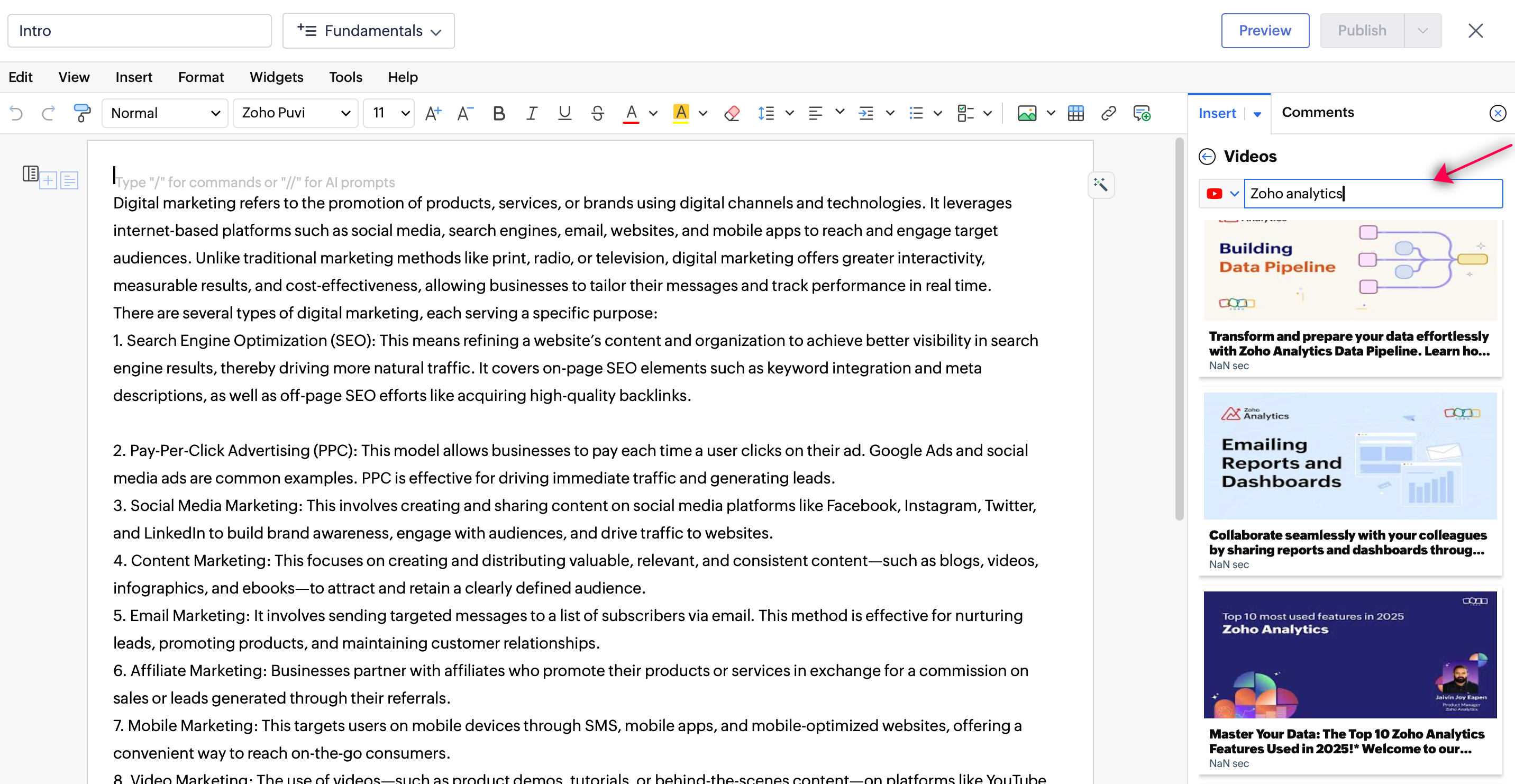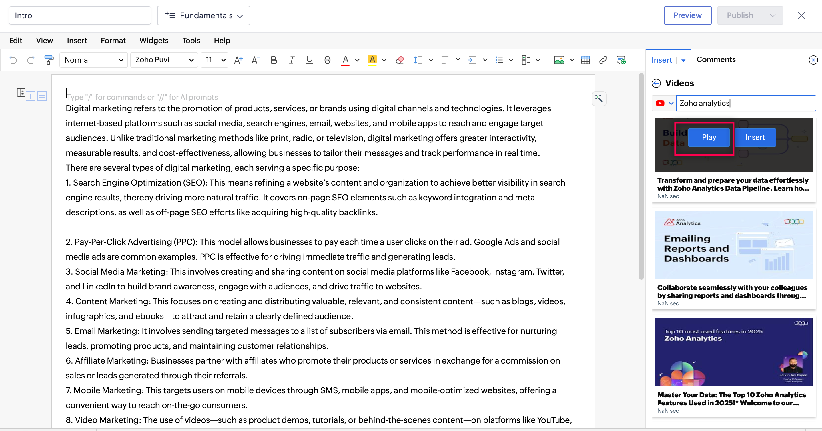 - Zoho WorkDrive でファイルを選択します。