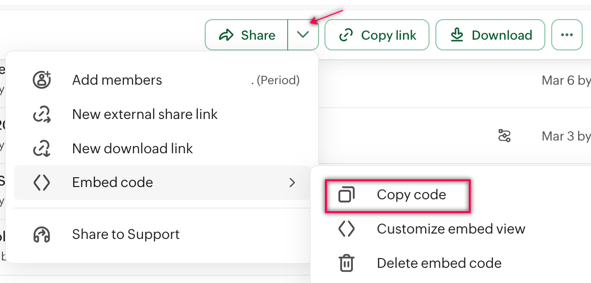 - ドロップダウンから Copy code を選択します。
