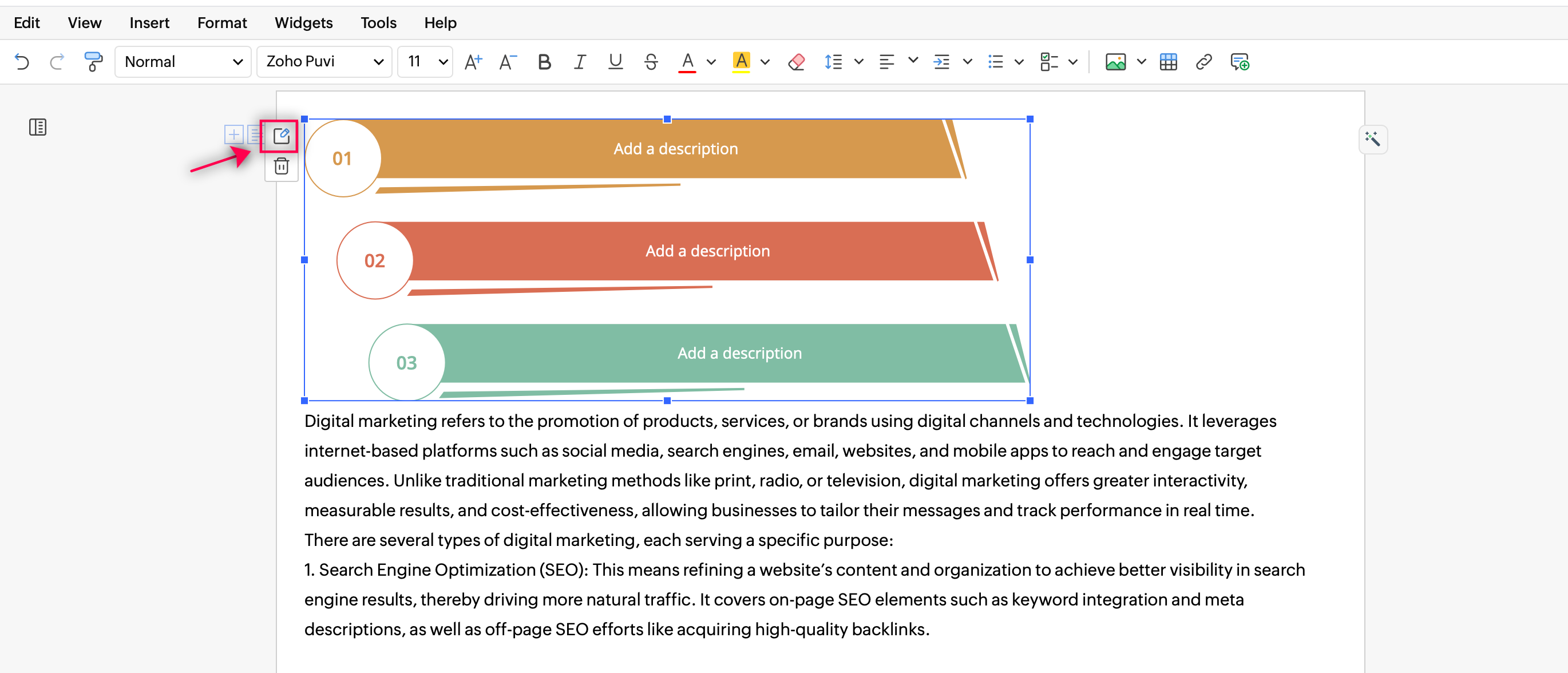 [Edit Drawing]をクリックすると、既に挿入した描画や図形を編集できます。