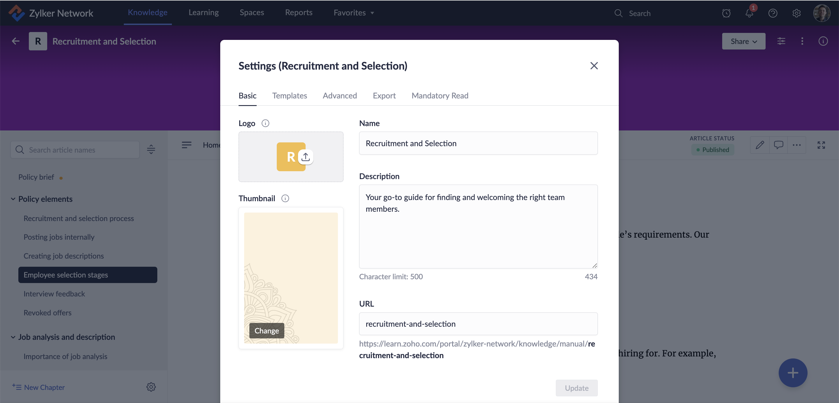 2. 設定をクリックし、基本タブをクリックします。新しい名前、説明、またはURLを入力します。