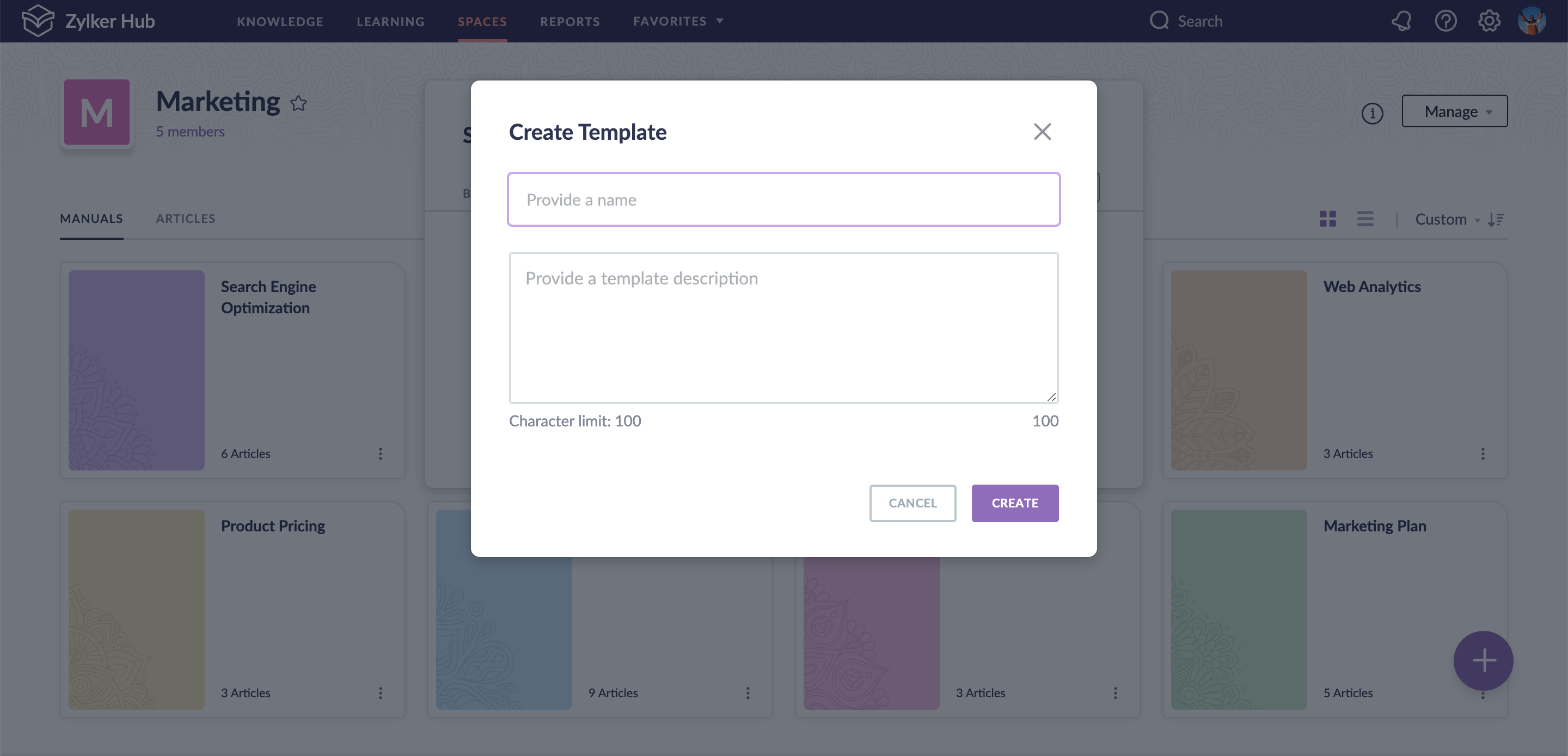 5. すべて Spacesをクリックしてスペースを選択、またはすべて Manualsをクリックしてマニュアルを選択します。
