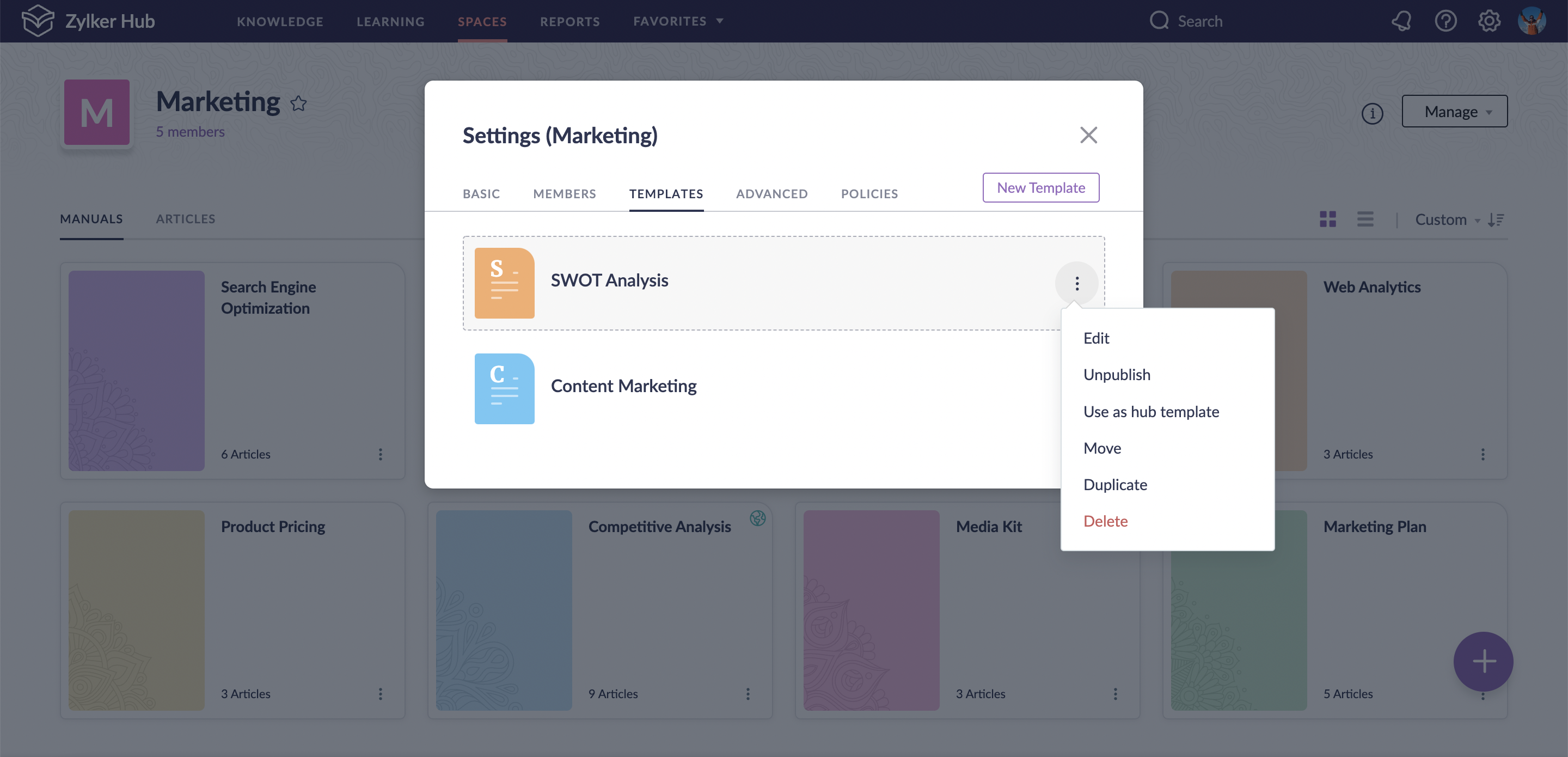 スペース テンプレートを別のスペースまたはマニュアルに移動する方法: