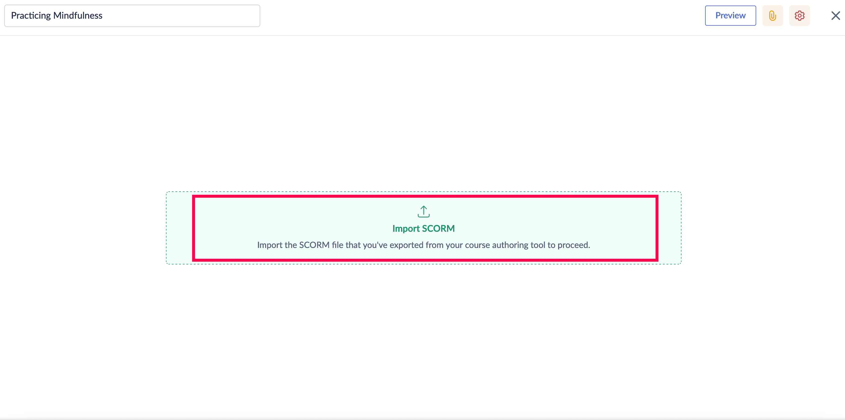 SCORMのインポートをクリックし、ご自身のデバイスからSCORMファイルを選択します。