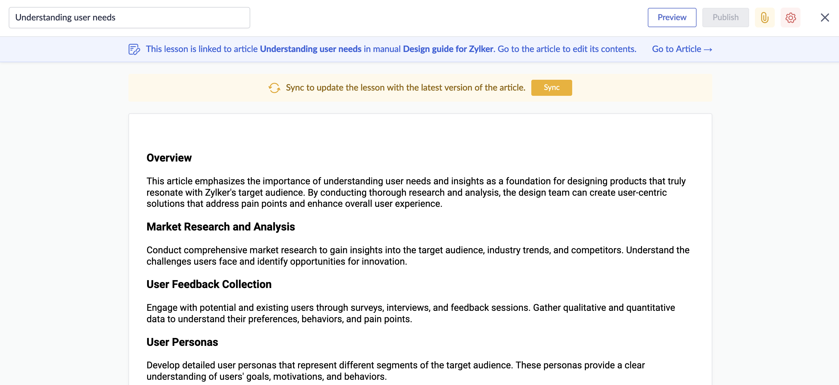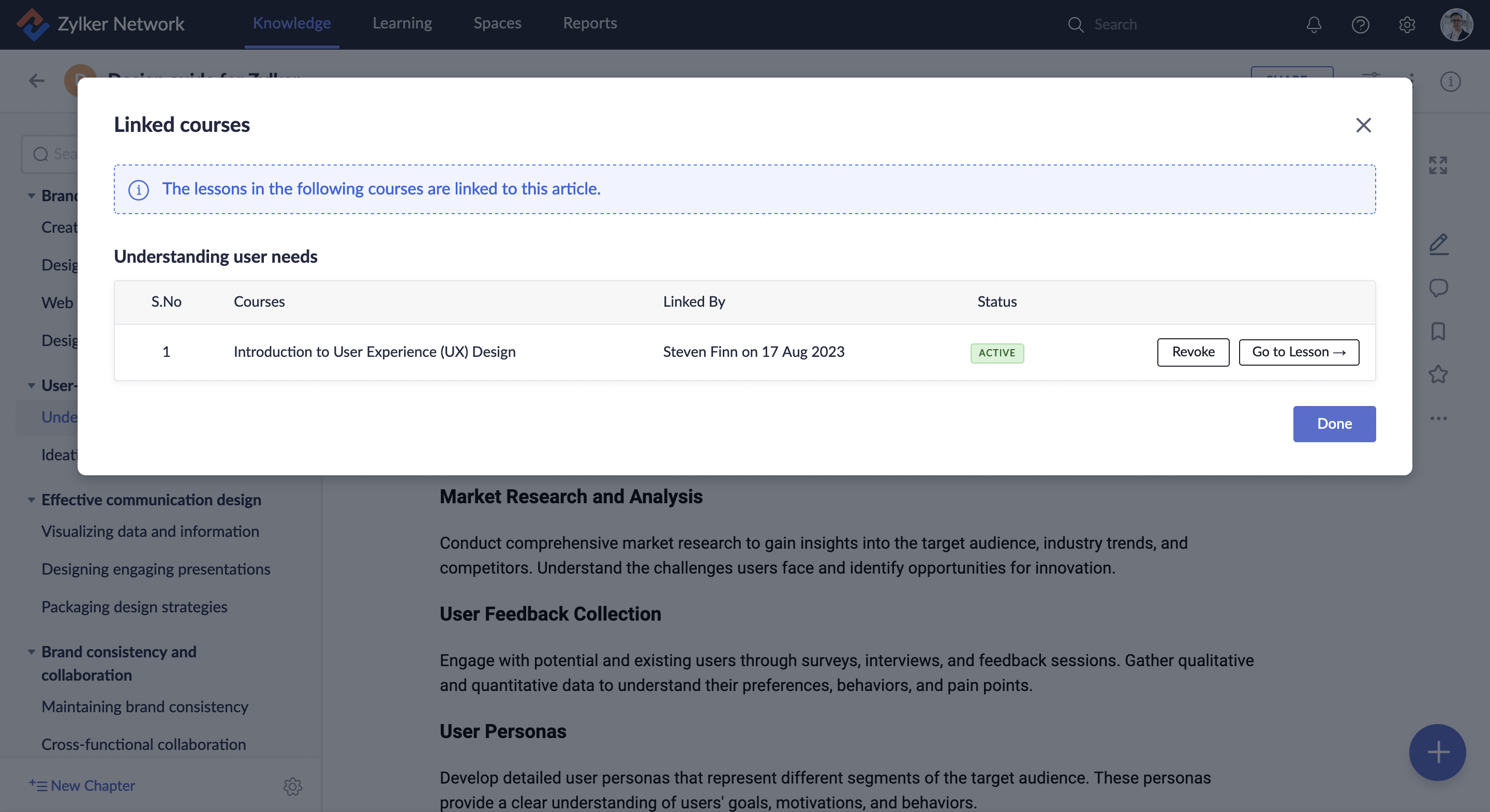 2. その他の設定アイコン () をクリックし、Linked lessonsをクリックします。