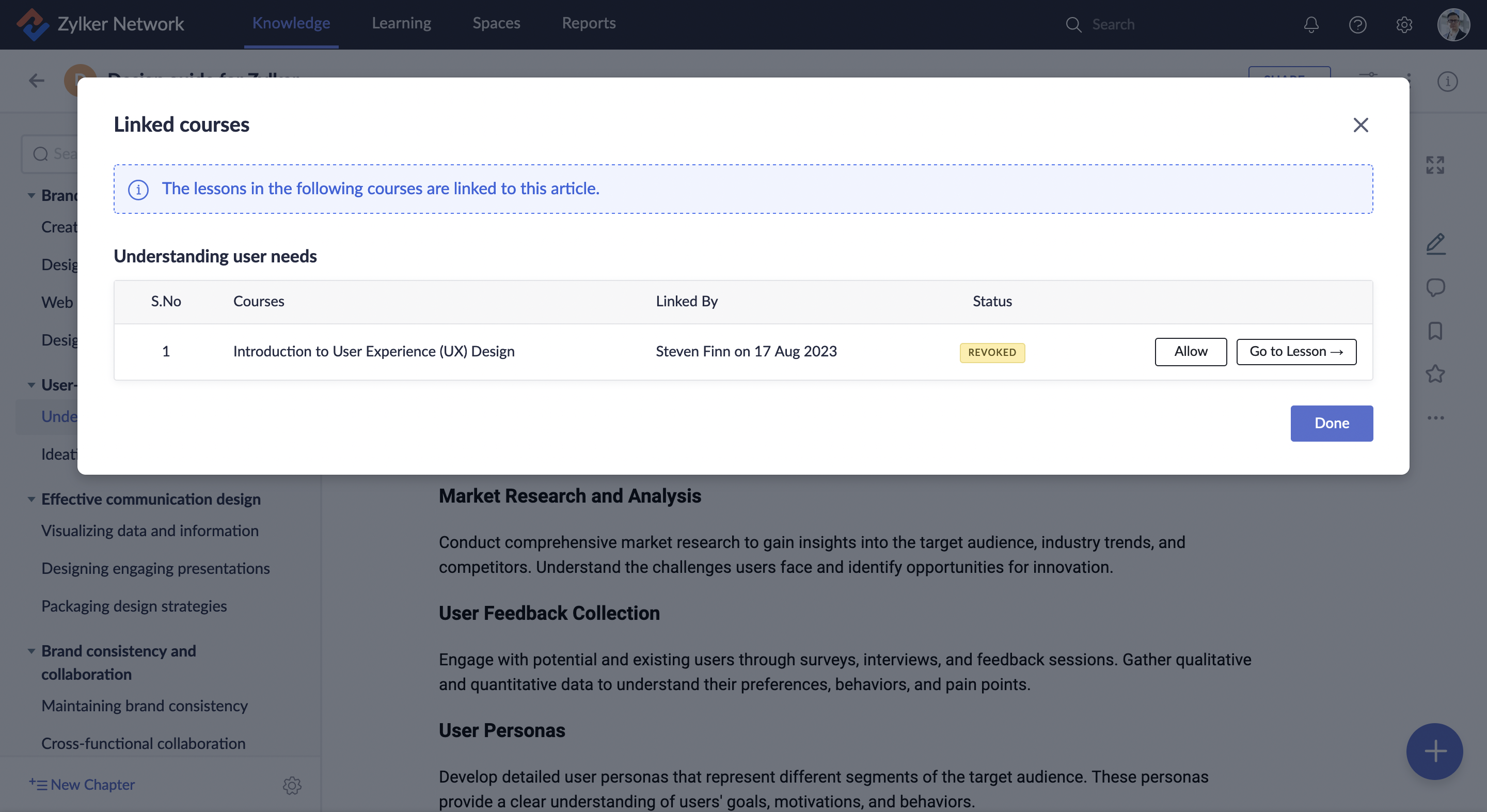 3. リストの中から再リンクしたいレッスンへ移動し、Allowをクリックします。